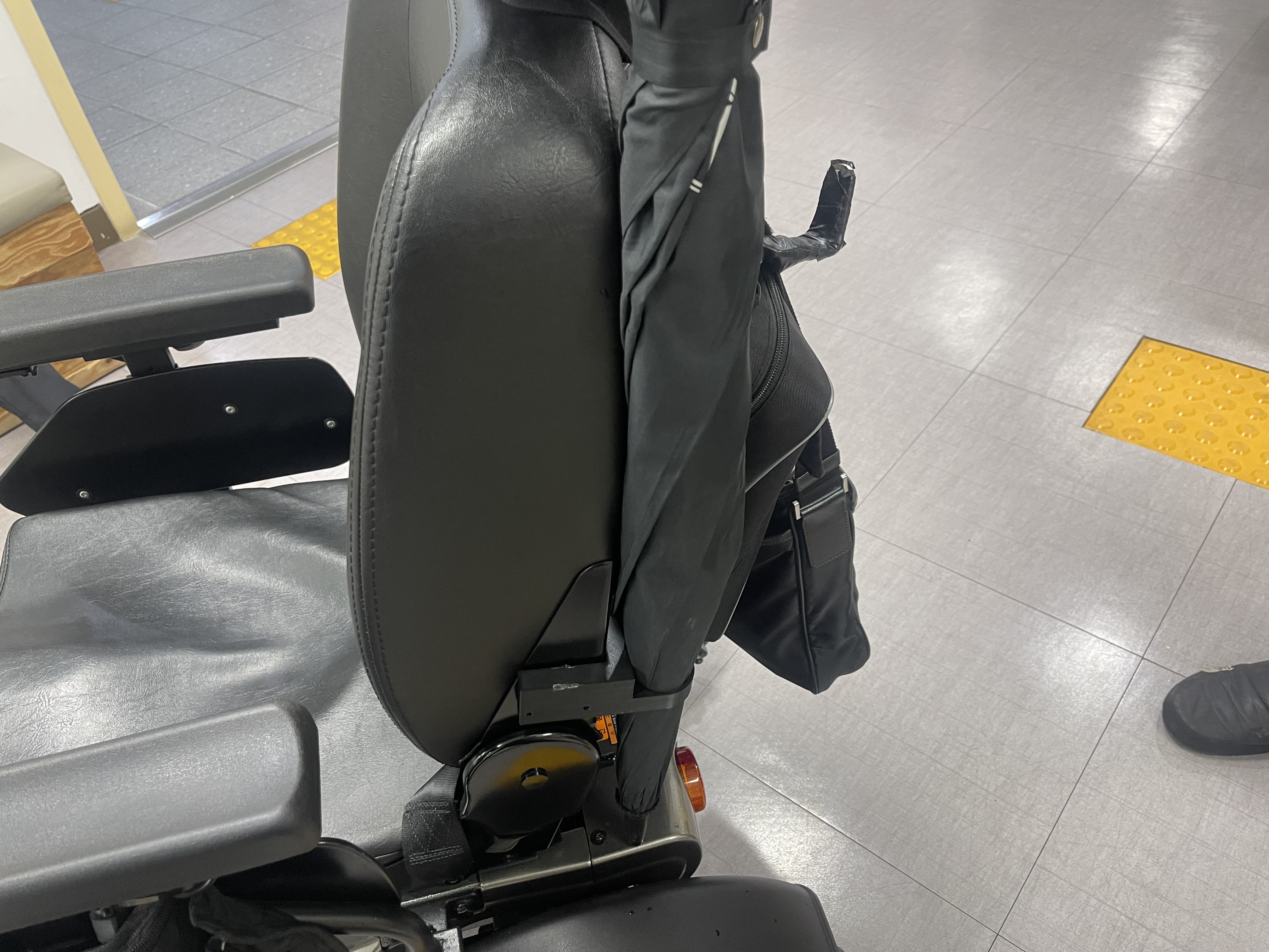 [결과 등록] 평소 전동휠체어에 우산 보관 불편을 해소하기 위해 전용 3D프린트 거치대를 제작해 편의성을 높임.