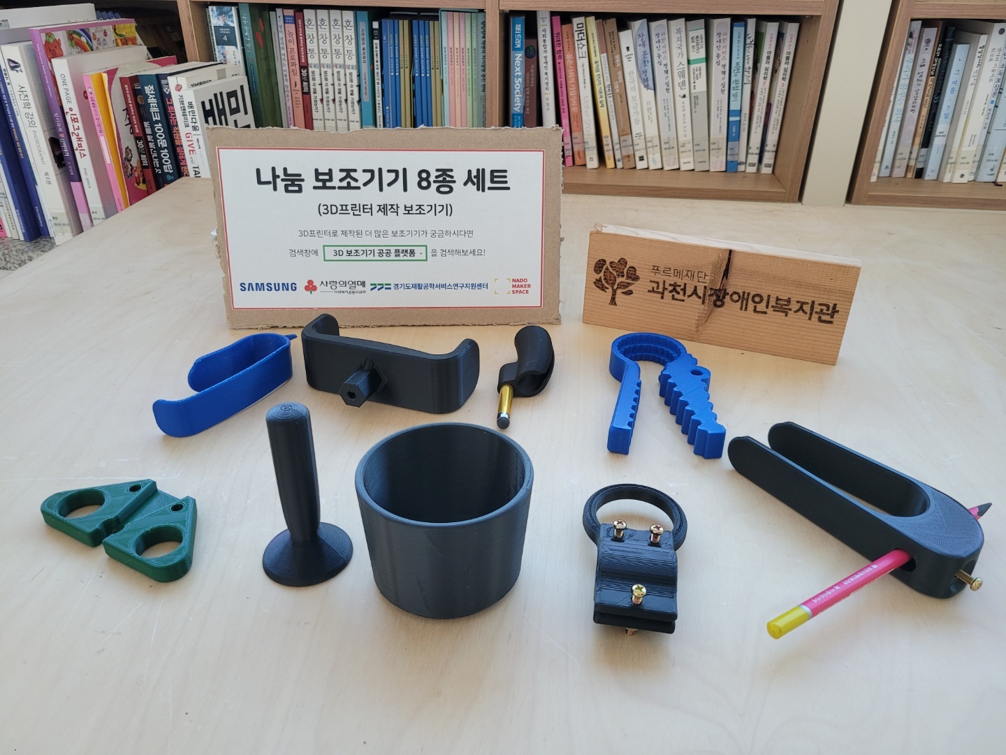 우선 나눔보조기기를 지원해주신 경기도재활공학서비스연구지원센터 분들께 감사인사드립니다. 향후 과천시장애인복지관에서는 뇌병변장애인 및 지체장애인의 신체기능 및 ADL 향상을 위해 연구지원센터와 연계하여 3D 프린트 제작 보조기기를 지원할 예정입니다.
