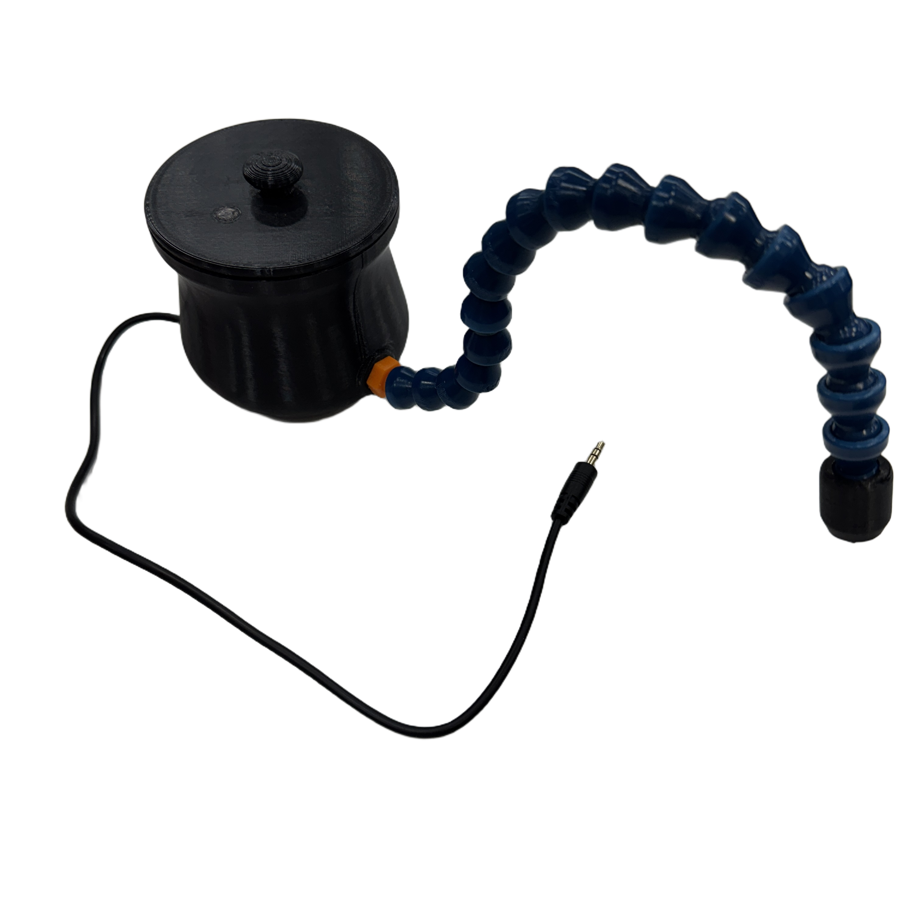 이후 내부 회의 과정에서는 “비접촉 스위치만의 장점을 더 살릴 수 있는 형태가 있으면 좋겠다”라는 의견이 제시되었습니다. 이를 반영해 센서의 위치와 각도를 자유롭게 조절할 수 있도록 유연한 플렉시블 암 끝에 센서를 부착한 주전자형 스위치를 새롭게 제작했습니다. 이 형태는 센서를 손가락이나 발가락 위에 두었을 때, 그 부위를 살짝 들어 올리는 정도의 아주 작은 동작만으로도 장난감을 쉽게 작동시킬 수 있었고, 움직임이 제한된 아동들도 더욱 편리한 방식으로 사용할 수 있도록 구현할 수 있었습니다.