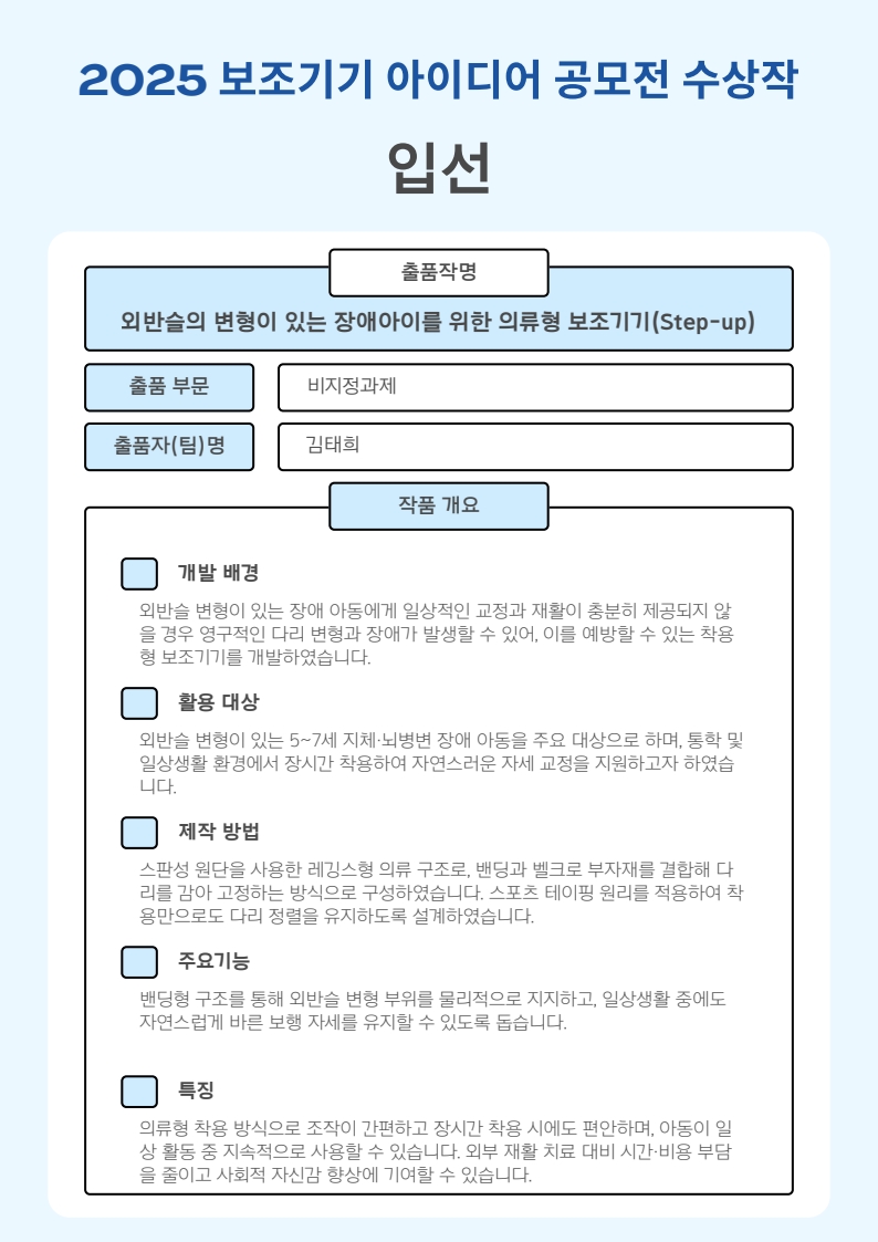 [2025년 공모전 수상작 - 입선] 외반슬의 변형이 있는 장애아이를 위한 의류형 보조기기(Step-up)