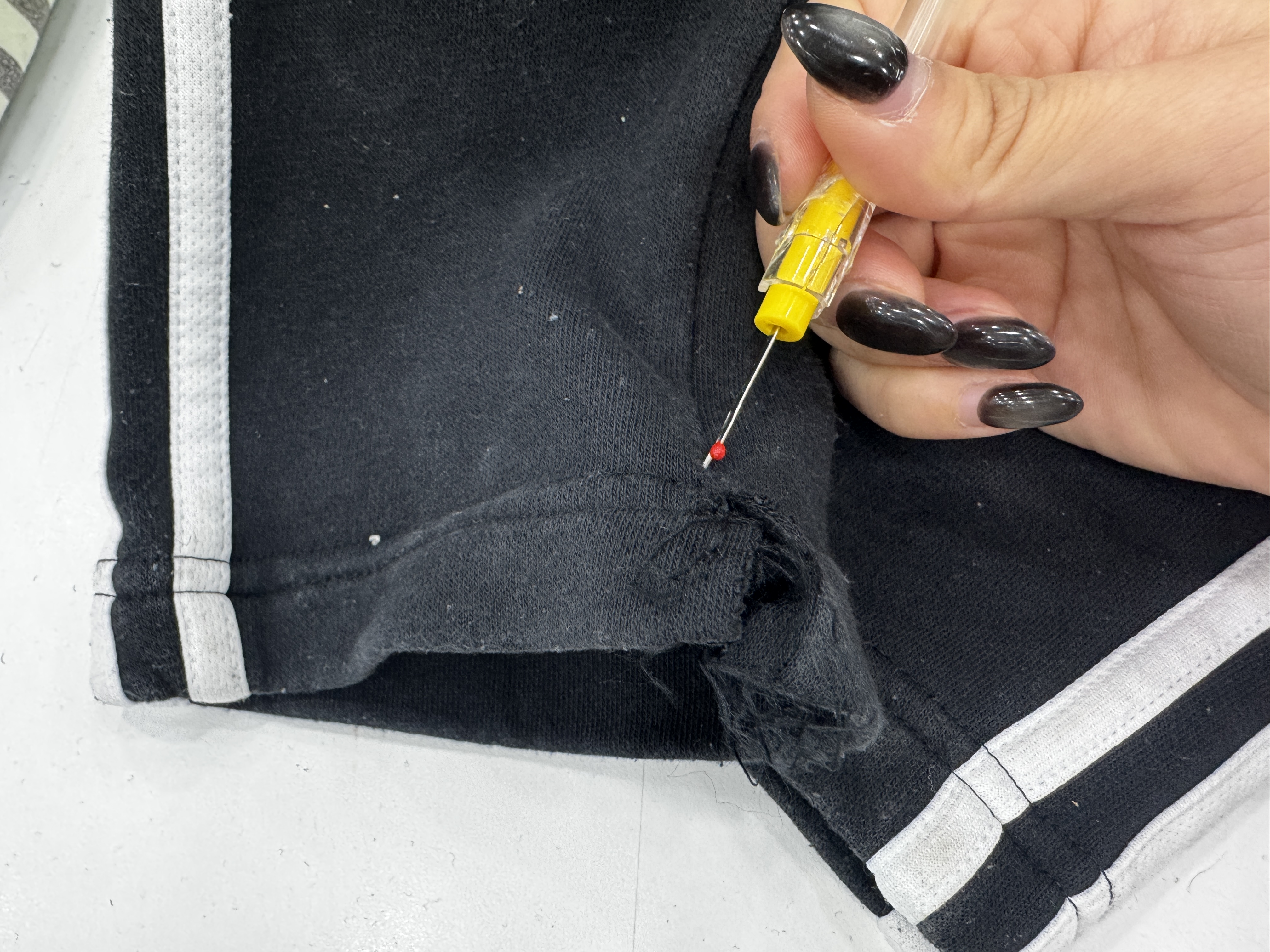 ② 트임을 진행해야하는 부분까지 실 뜯기