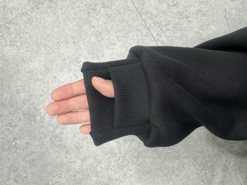 ⑦ 제작 완성된 핸드워머 시보리를 맨투맨에 부착