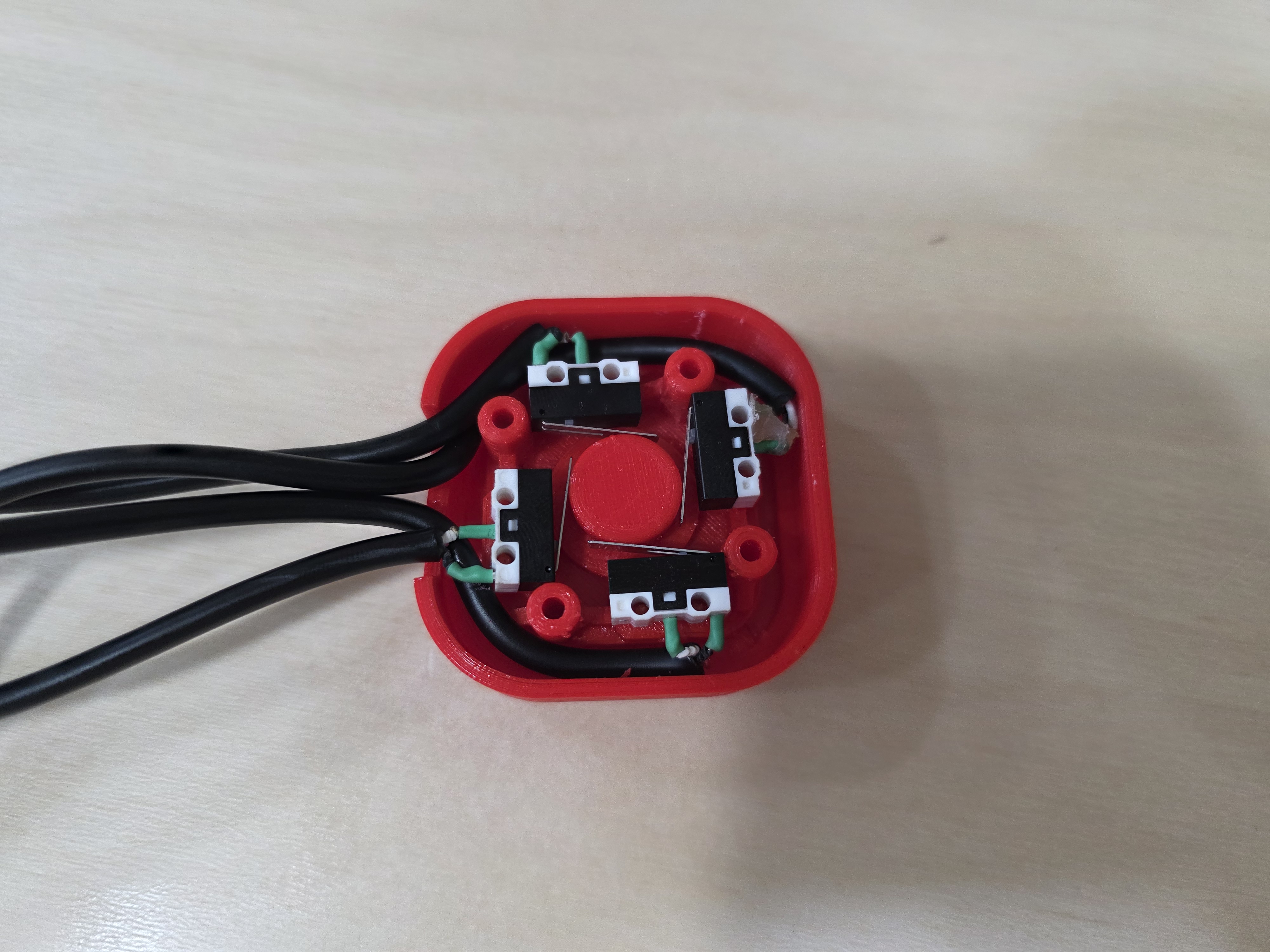 조이스틱 내부에는 고감도 마이크로 스위치와 오디오 케이블 연결 구조를 적용해 안정적인 신호 전달이 가능하도록 하였으며 외형과 지지 구조는 모두 3D 프린터 출력물로 제작하여 사용자 손 크기와 움직임 범위에 맞춘 맞춤형 설계가 가능하도록 했습니다. 레버 길이와 상단 캡 형상은 미세한 힘에도 반응할 수 있도록 조정되었고, 접촉 면적을 넓혀 손가락 부담을 최소화하였습니다. 이를 통해 손가락 근력이 극히 약한 사용자도 반복적인 입력을 안정적으로 수행할 수 있습니다.