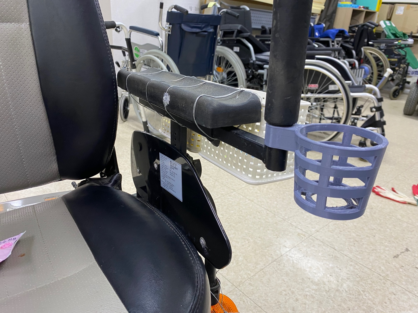 3D 보조기기 제작과정 및 적용결과, 활용 만족도 등을 입력해주세요.이용자의 전동휠체어(나래디럭스) 손잡이 프레임 부분 측정, 자주 사용하는 컵 사이즈 고려하여 설계 진행