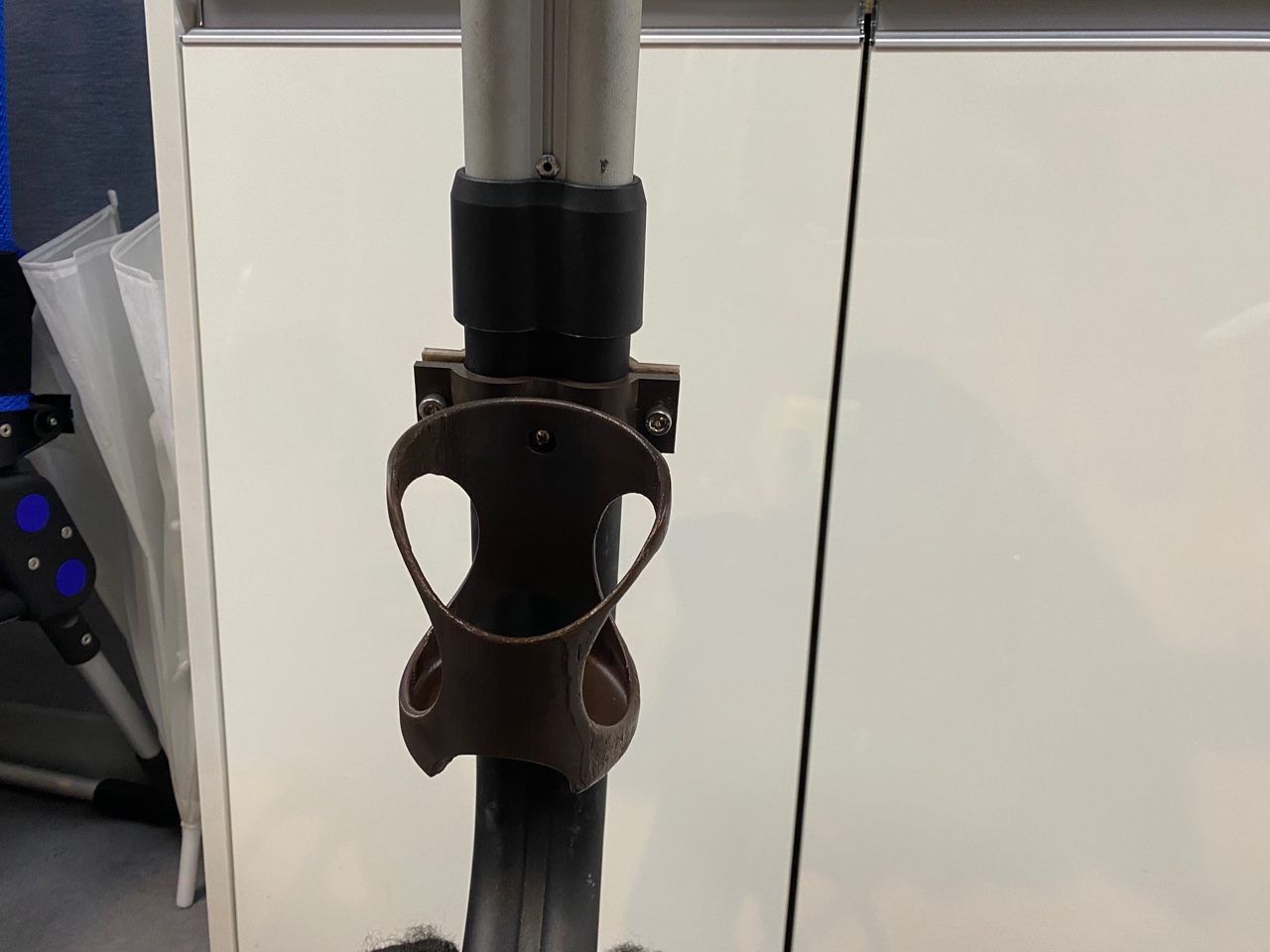 전동스쿠터 앞쪽에 부착할 수 있는 컵홀더 제작 의뢰하셨고 컵홀더 부분, 스쿠터와 조립할 부분 3D설계 및 출력 진행하였고 사포로 표면정리 및 도색작업으로 마무리하여 지원 나감.
