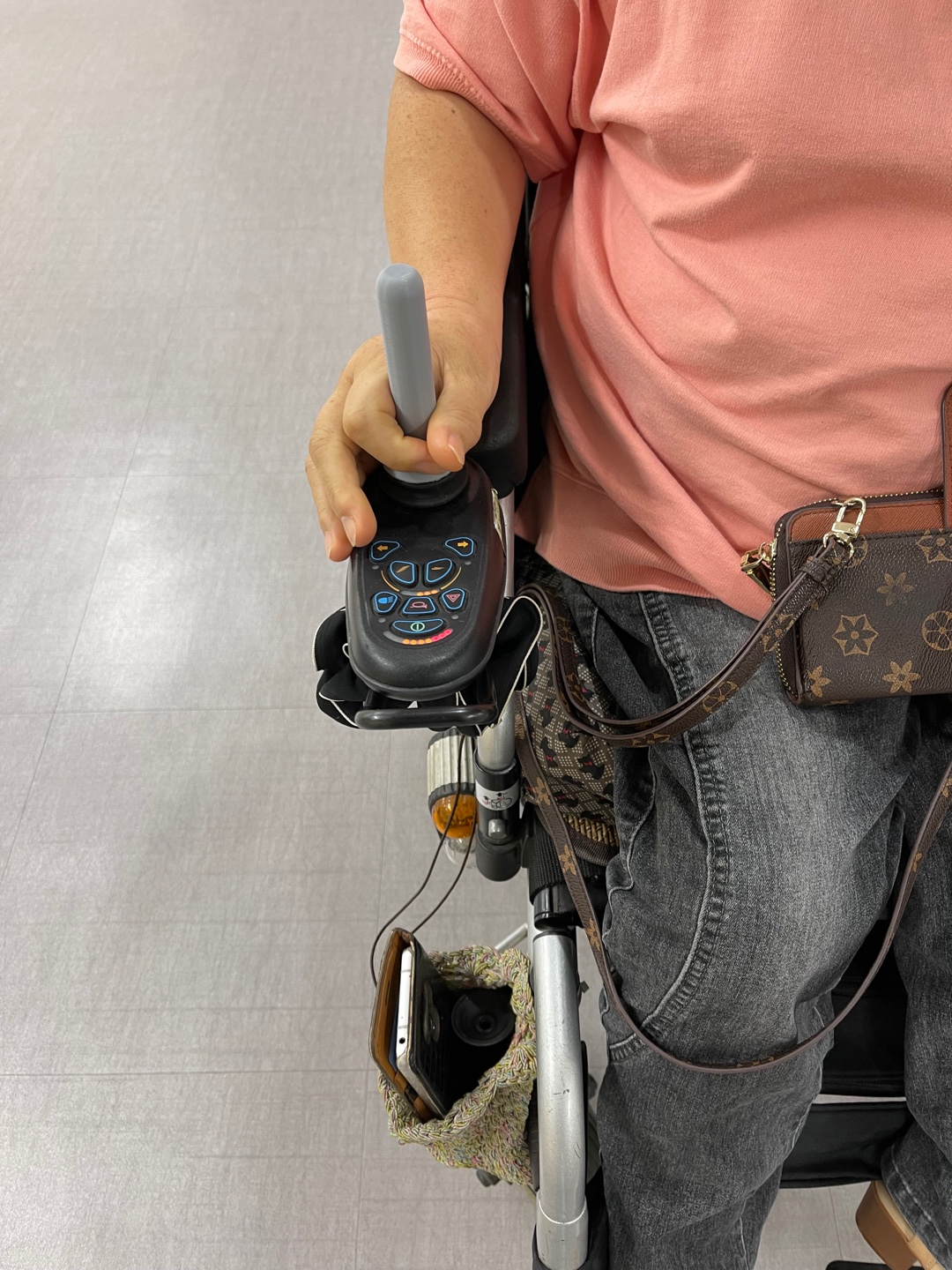 욕구 및 과정 : 평소 상지와 하지에 통증이 있어 물리치료를 주기적으로 받고 있음.전동휠체어에 기본으로 제공되는 조이스틱이 너무 짧아 조이스틱을 사용할 때 마다 불편함을 느끼고 있어, 더욱 긴 조이스틱을 원해 적용함.