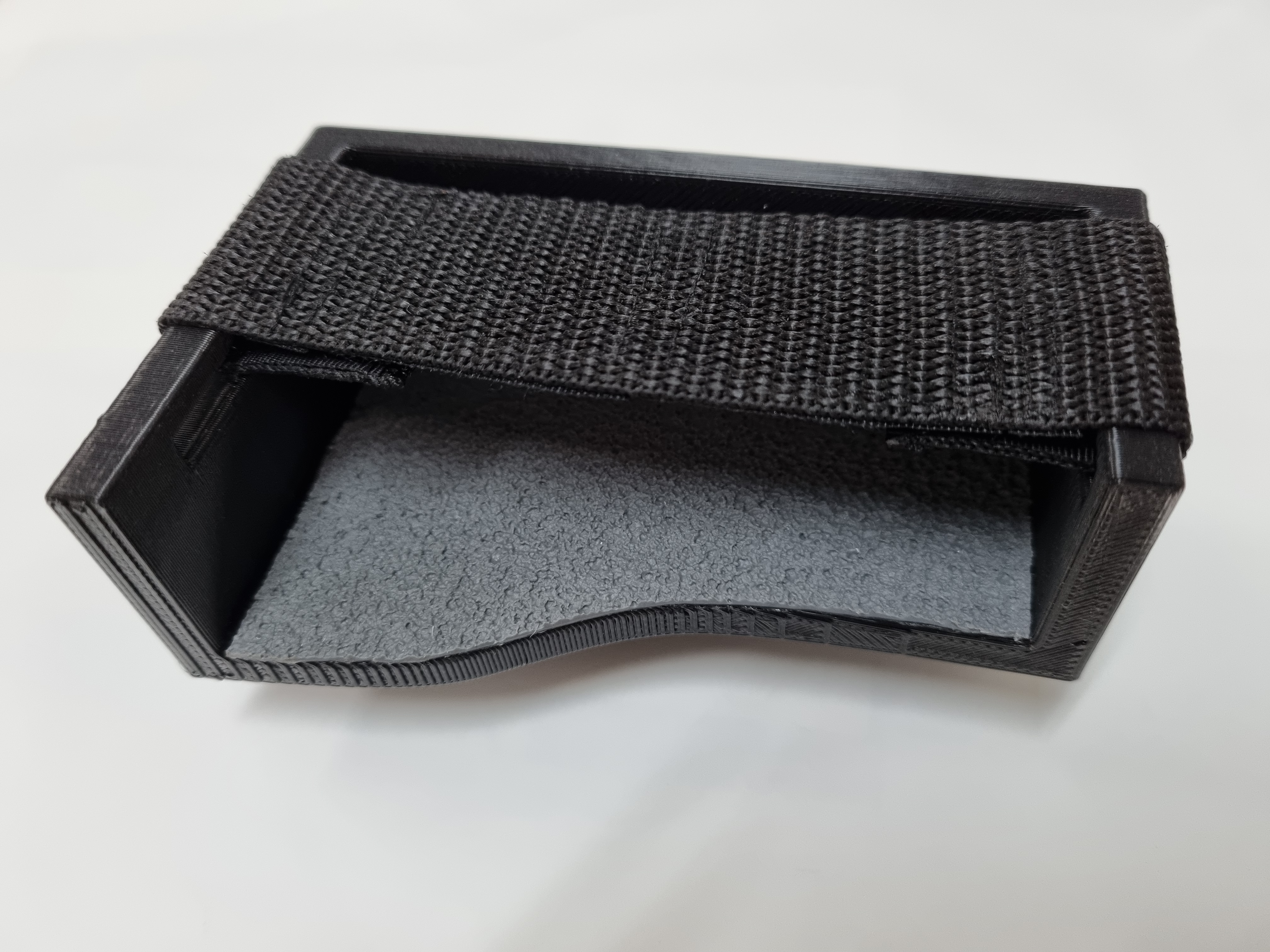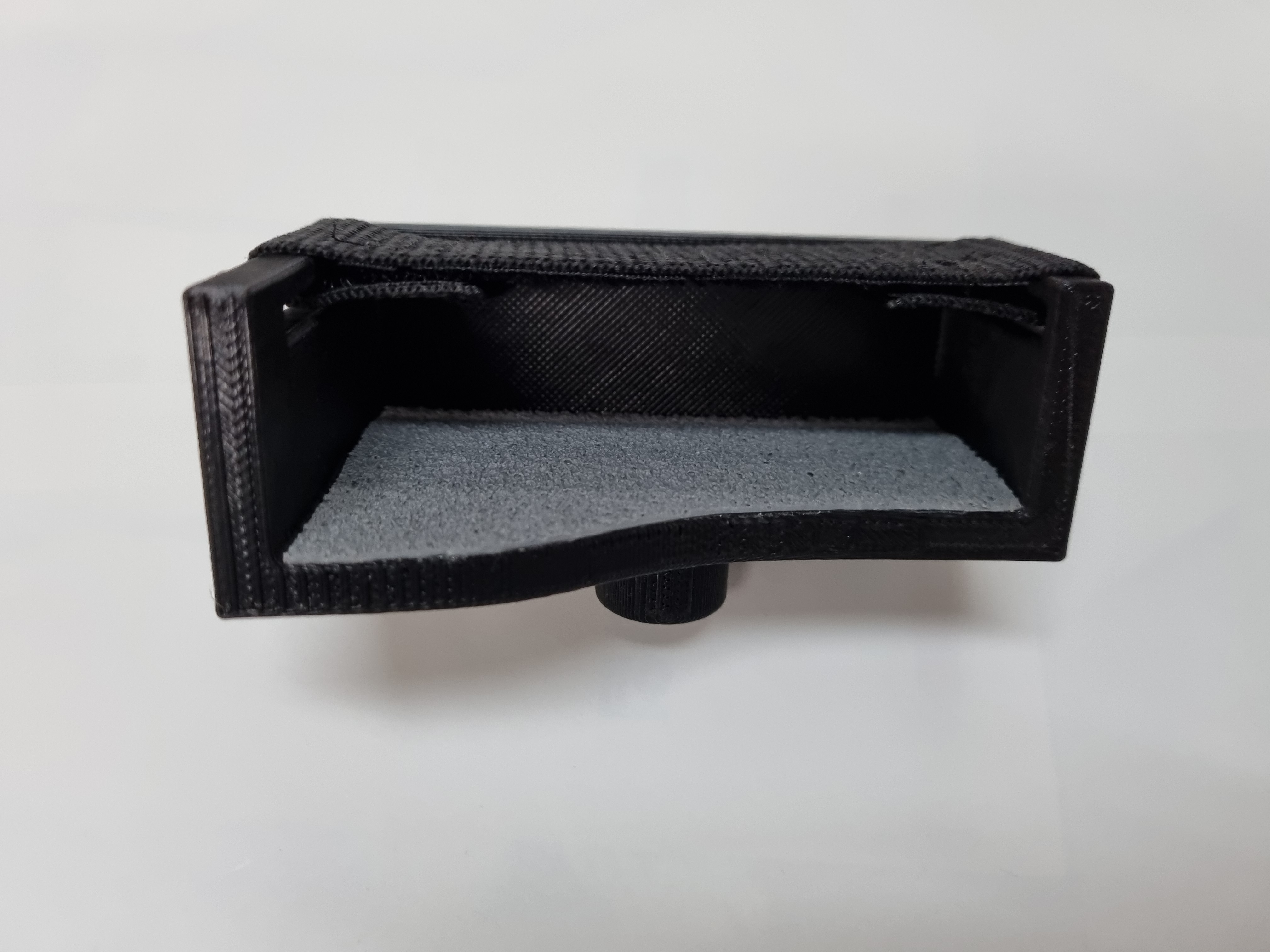 왼발의 발가락과 발바닥 일부를 감싸는 형태로 제작하였으며, 발바닥이 닿는 하단에 굴곡을 주고 실내용 미끄럼방지 테이프를 부착하여 발바닥이 조이스틱에서 미끄러지지 않도록 하였음.