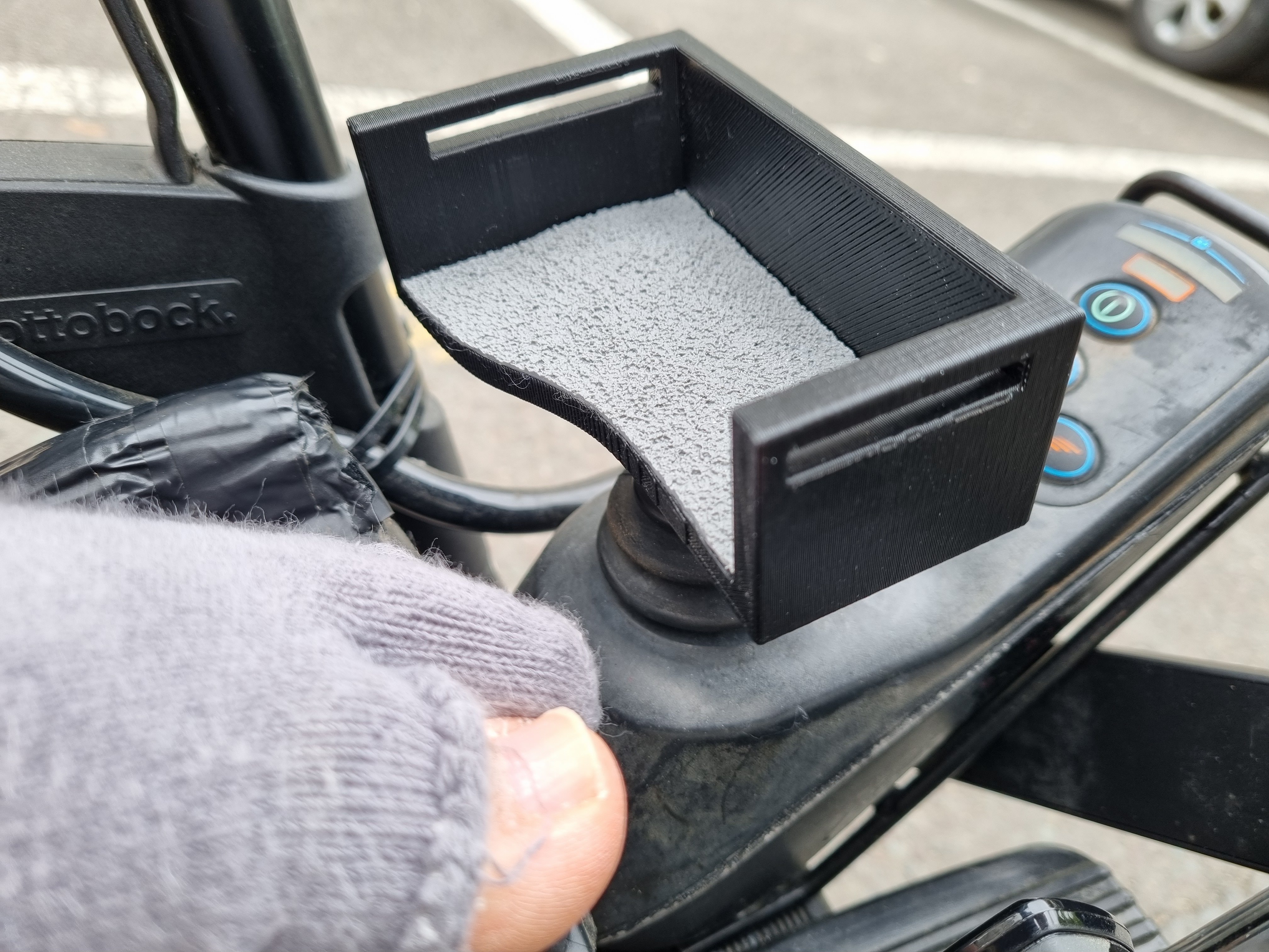 상세불명의 뇌병변/심한 장애로 등록되어 있으며, 뇌성마비와 유사한 증상을 보이고 있음. 양 손을 전혀 사용할 수 없으며, 양 발 중 왼발만 스스로 움직일 수 있어 이를 활용하여 전동휠체어를 조작하고 있었음. 발가락으로 조이스틱을 쥐는 동작을 장시간 지속하기 힘들어 이를 개선하기 희망하였음