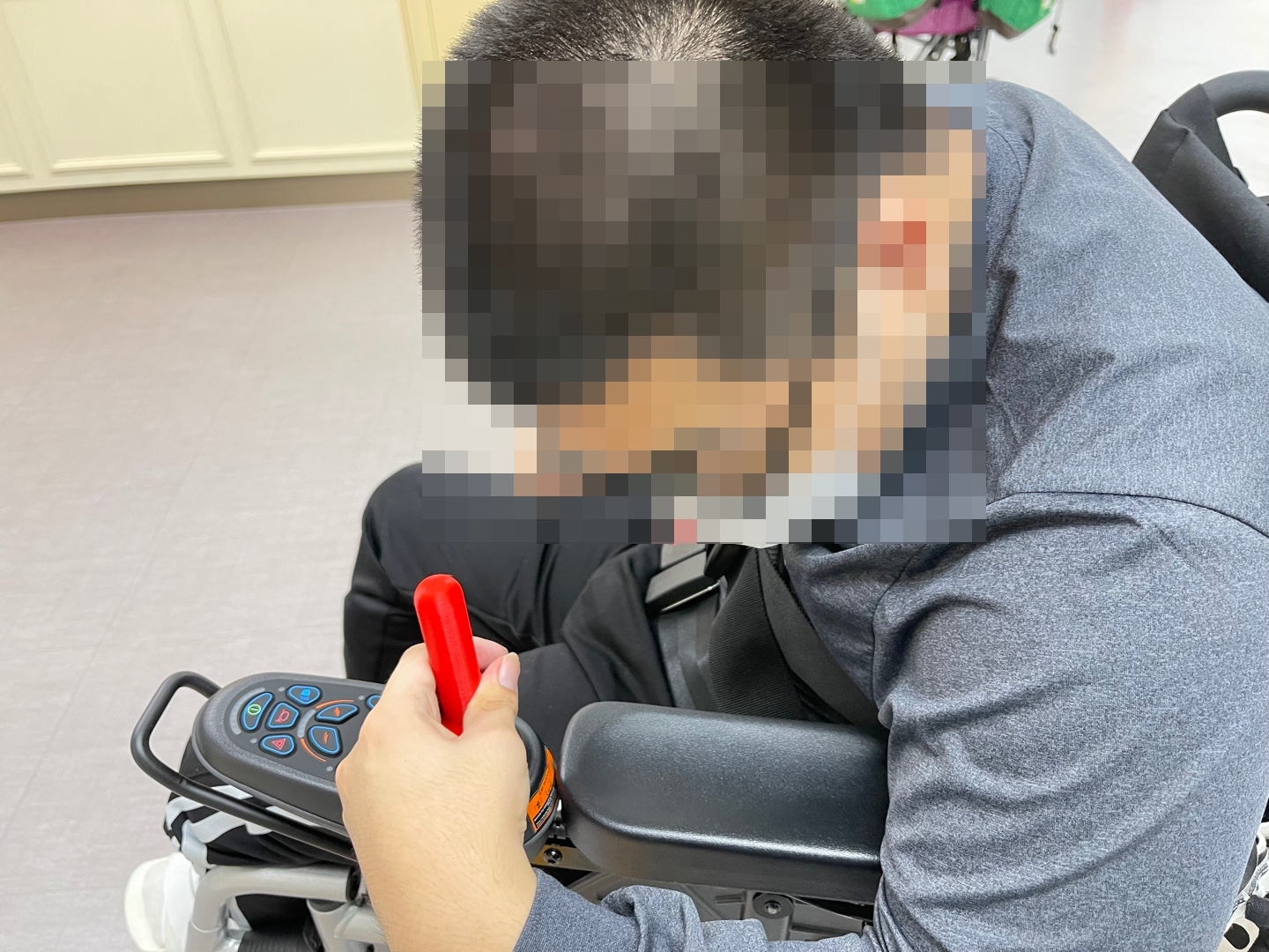 욕구 및 과정 : 신청자는 전동휠체어 전용 U자 조이스틱을 신청했지만 상지가 앞으로 굽어져 있어 머리가 조이스틱에 닿아 상처가 날 수 있어 전동휠체어 전용 I자 조이스틱을 적용함.