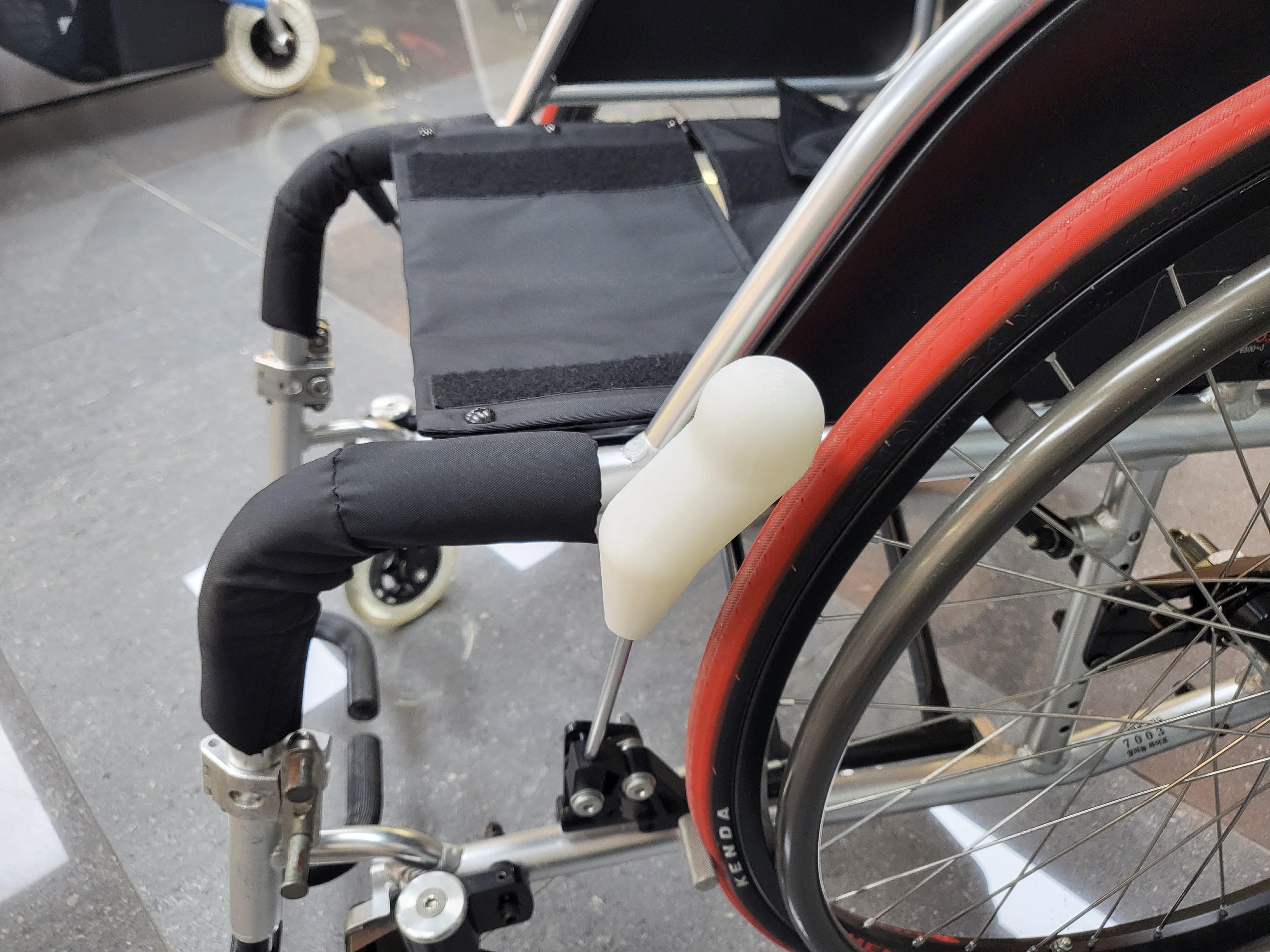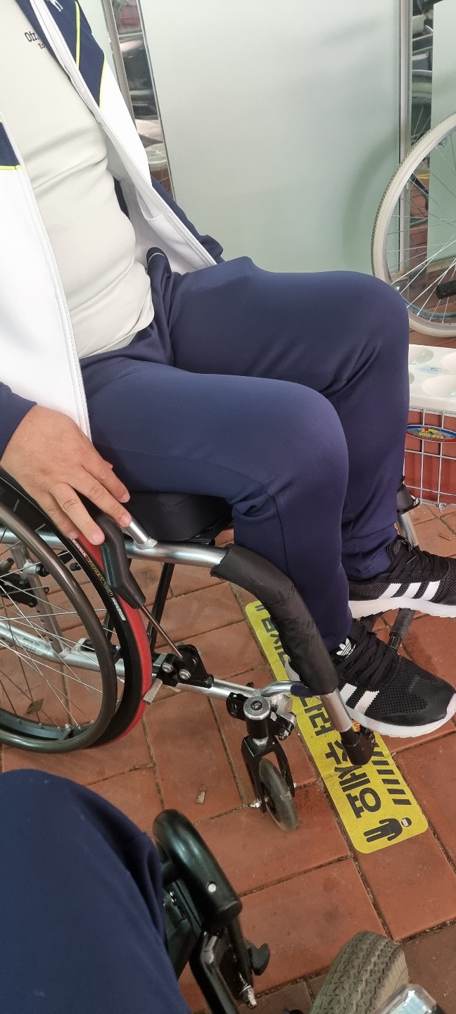 대상자는 뇌성마비로 인한 하지 및 상지의 일부가 마비되어 있는 상태임. 수동휠체어에 탑승하였을 때, 상체에 힘을 주어 앞으로 미는 힘이 제한되어 있어 브레이크 장착에 어려움이 있었음. 또한, 타인의 도움으로 동작을 수행했을 시에는 손가락의 굽힘이 제한되어 있어 중지손가락을 걸어서 브레이크를 장착하는 모습을 보였음.이러하듯, 현재의 불편함을 해소하고자 길이가 연장된 브레이크 손잡이를 제작에 대한 욕구를 보였음. 추가적인 욕구로는 색상은 검은색이며, 관절이 있는 모양을 요청함.