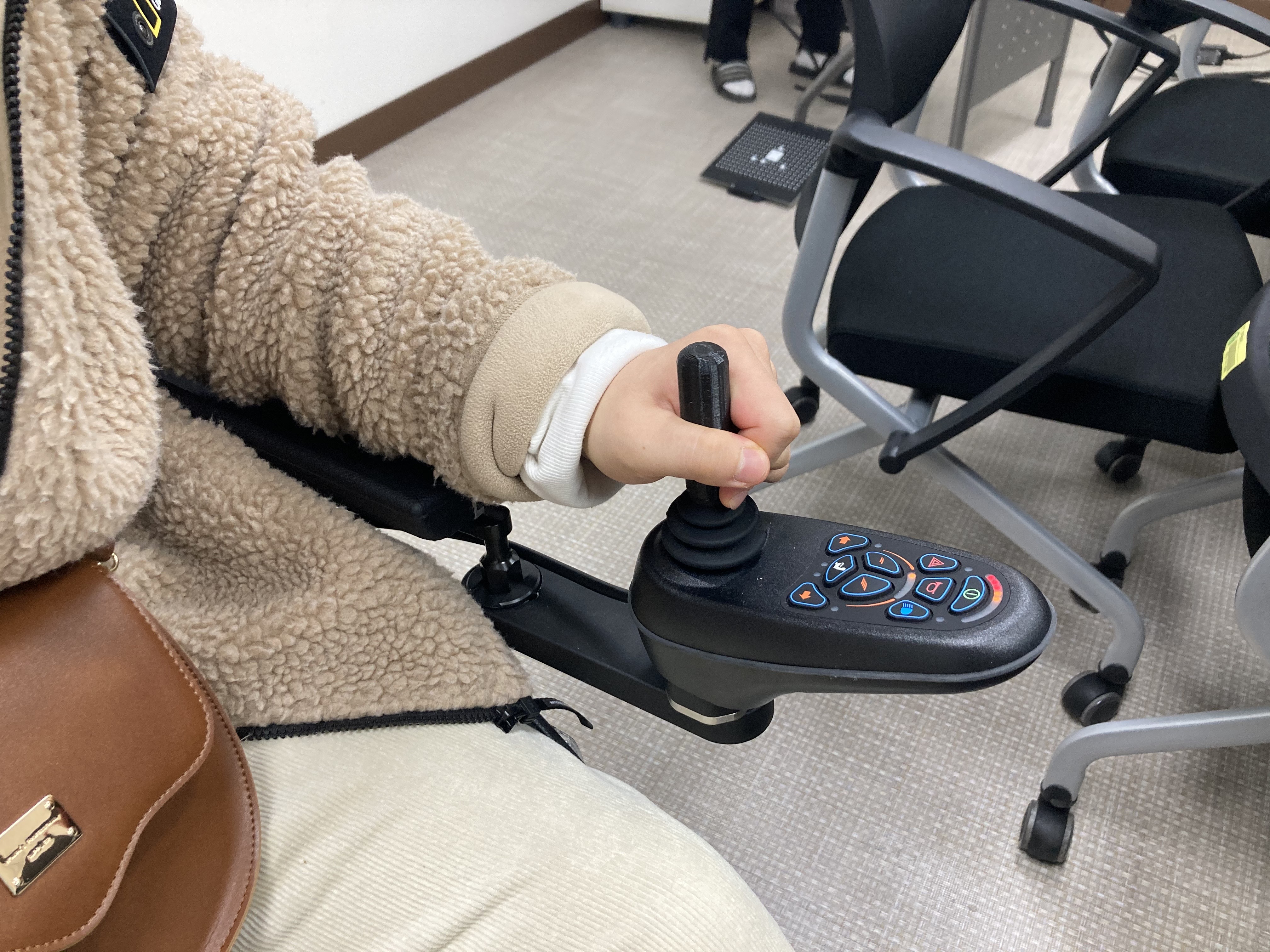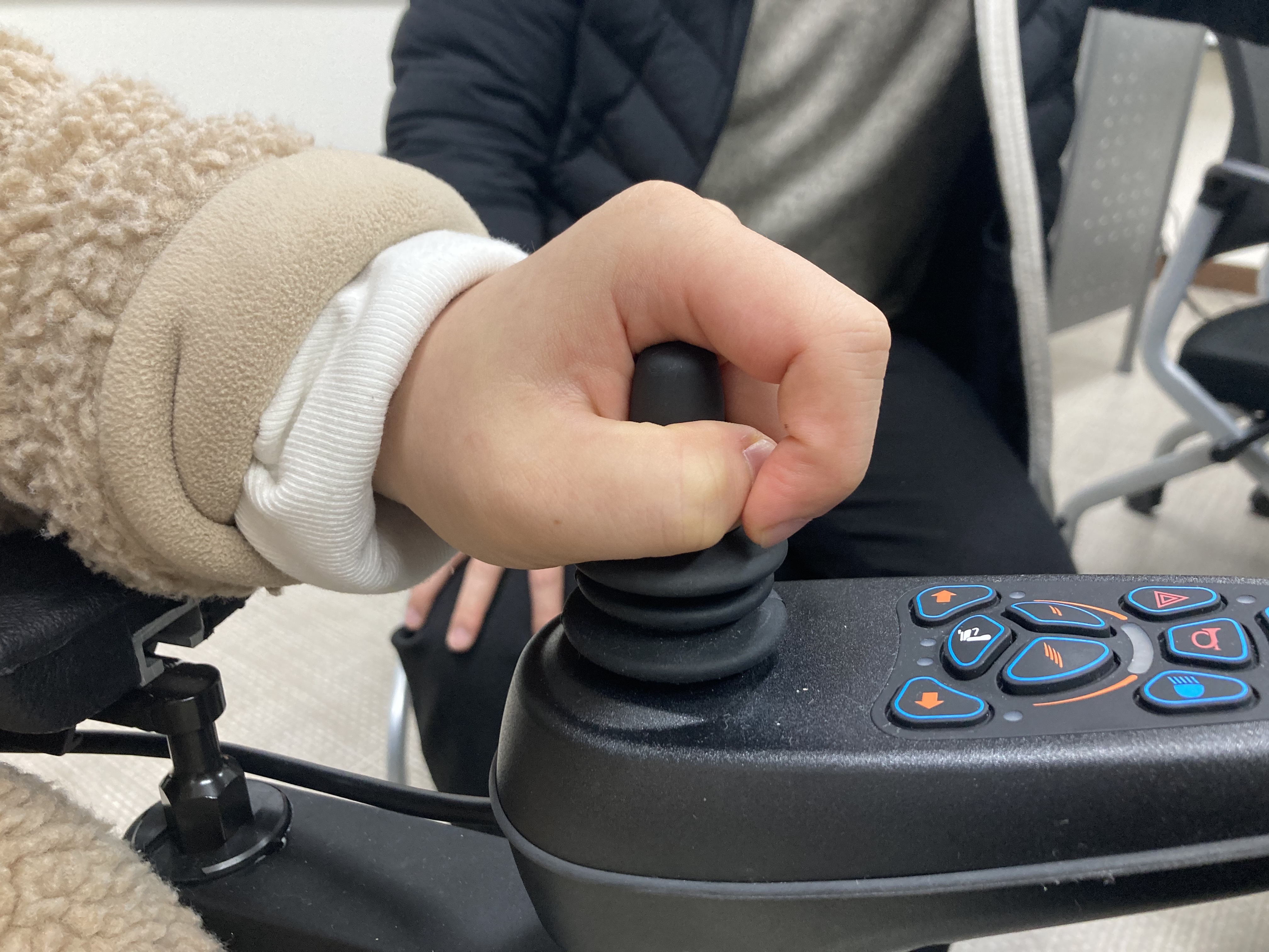 ● 욕구사항: 대상자는 보행이 어려워 전동휠체어로 실내 및 실외 이동 중인 상황임. 대상자는 현재 손가락 등의 소근육 운동이 원활하지 않아 기존 전동휠체어에 부착되어있는 조이스틱을 잡기가 어려워 운전하기 힘들어함. 대상자는 조이스틱을 쉽게 잡아 안전한 운행을 하고 싶어하는 욕구가 있음.