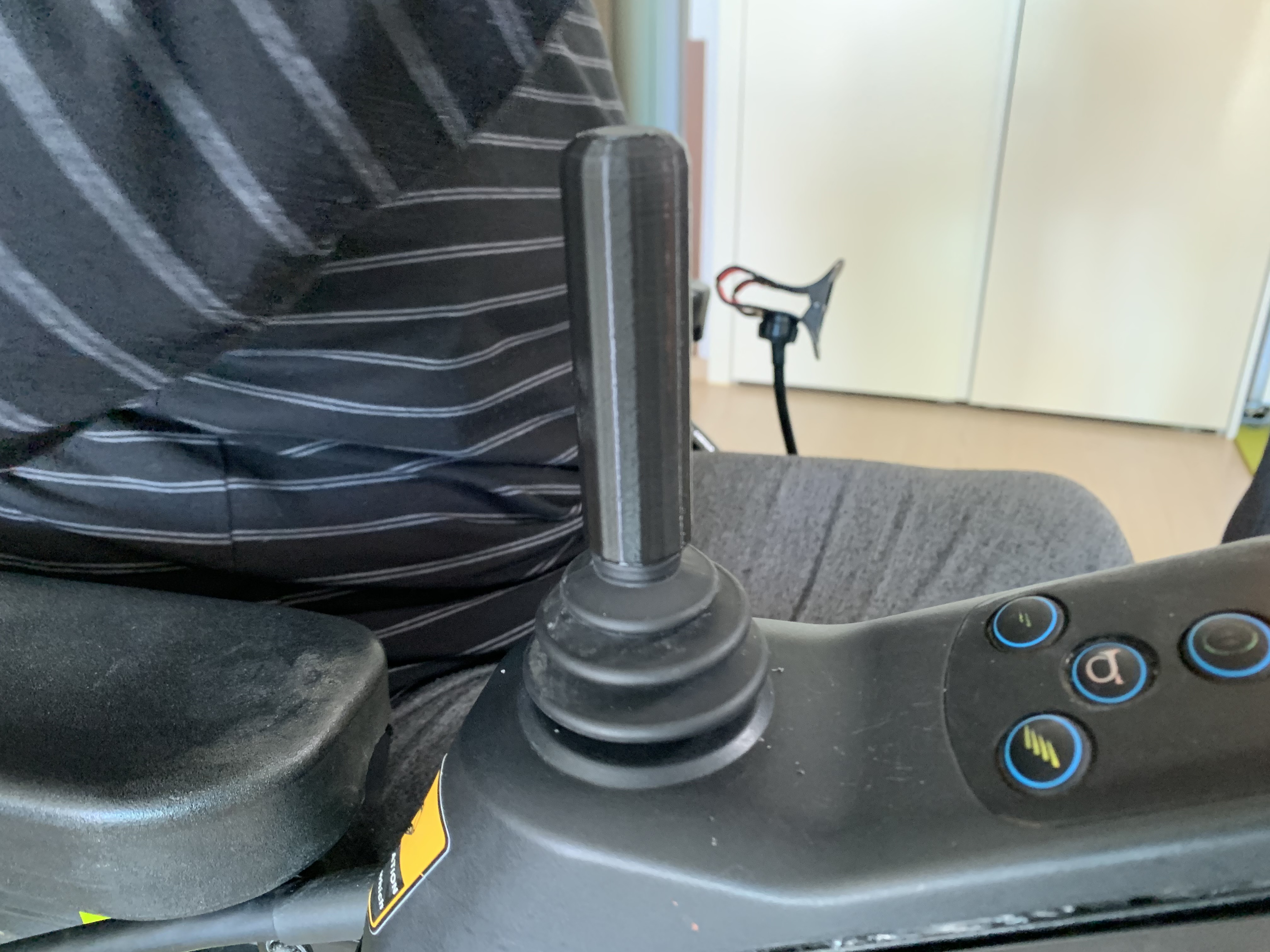 ● 욕구사항: 대상자는 장시간 전동휠체어를 사용하고 있으나, 손가락의 폄 운동 수행이 잘 되지 않아 골프공으로 개조된 조이스틱을 잡는게 어려워 조이스틱 조절이 힘든 상황임. 대상자는 일자형 막대형태로 된 조이스틱에 대한 욕구가 있음.