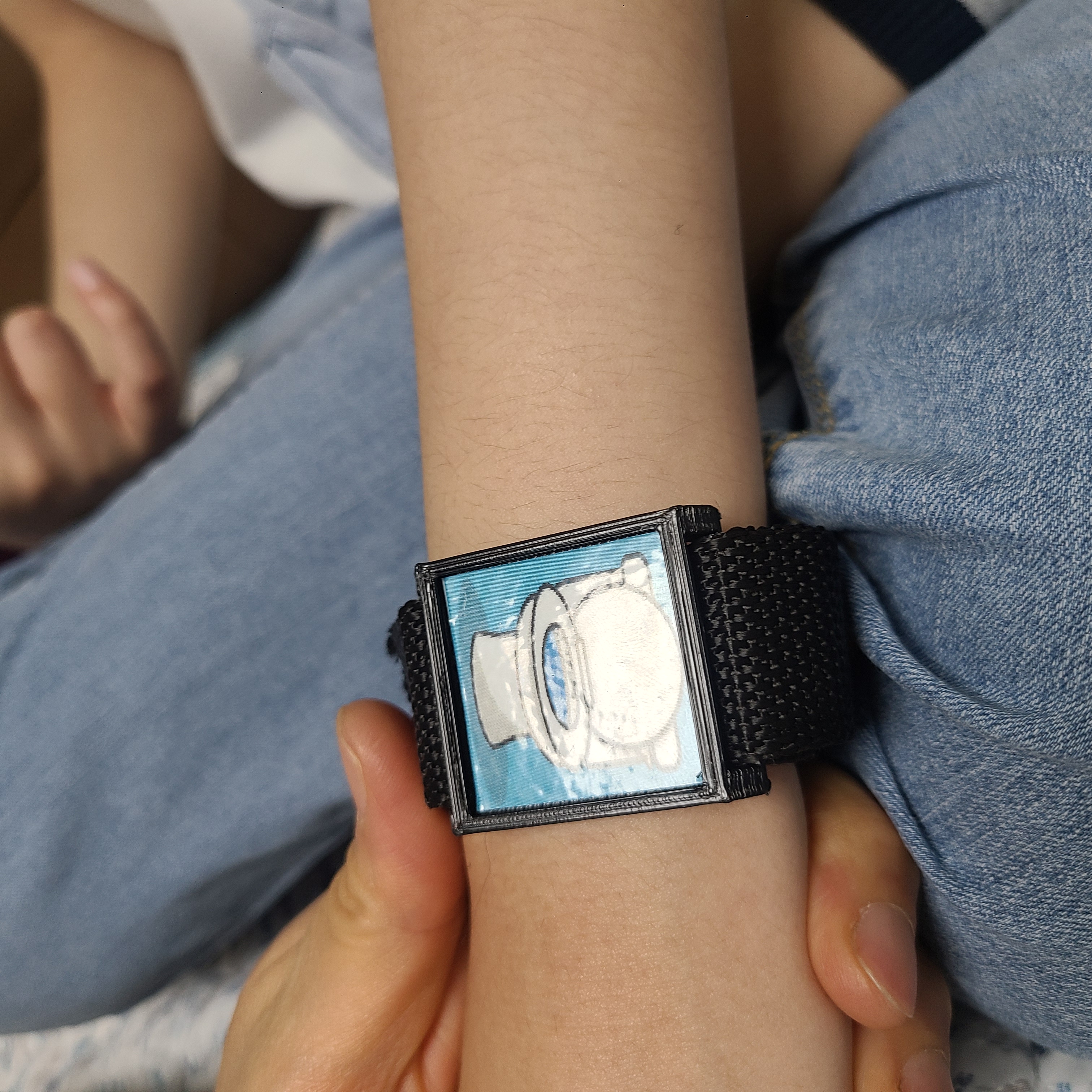 ● 제작과정: 대상자가 심볼을 인지할 수 있도록 팔의 너비에 맞는 팔찌를 제작하였으며, 스트랩을 연결할 수 있는 모양의 판으로 제작함.