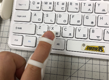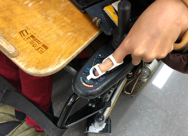 ▣ 평가 - 대상자는 경직성 뇌성마비의 손가락 관절변형장애로 손가락이 모두 구부러져 휘어진채로 펴지지 않음. - 손가락 경직 및 변형으로 학교 수업 중 노트북을 사용하는데 제한이 있어타이핑 막대 보조기기 제작을 의뢰함. ▣ 결과 - 손가락 변형이 있는 대상자에게 3-point 스플린트를 활용하고자 두개를 이은 모양으로 제작함. - 제작 결과, 대상자는 보호자의 도움없이 타이핑 막대 보조기기를 활용하여 독립적으로 노트북을 사용할 수 있게 됨.