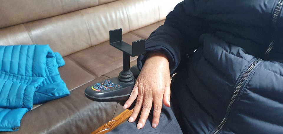 ▶ 평가정보 - 76세 남성 / 지체 / 심한장애 / 척수손상 - 전동휠체어 사용 시 조작 및 편의성 향상을 위한 전동휠체어 팁 제작 의뢰