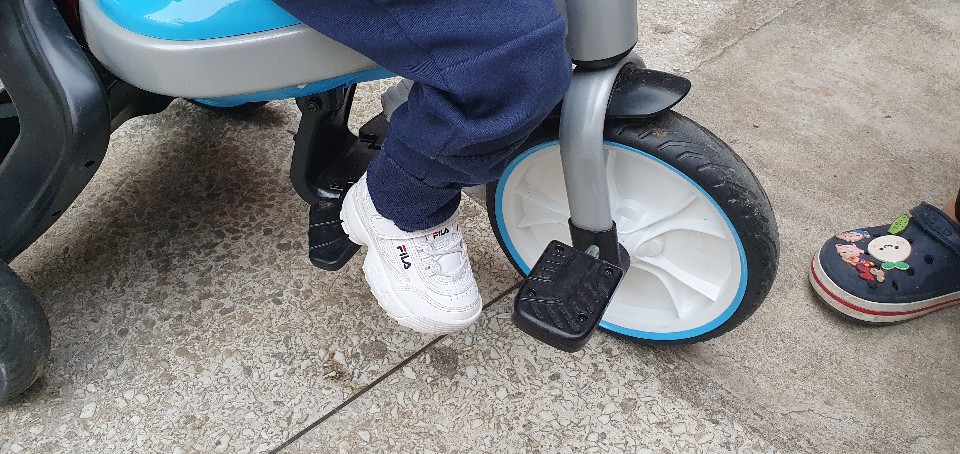 ▶ 적용 전 - 자전거가 신장에 맞지 않으며 발 고정에 어려움이 있음