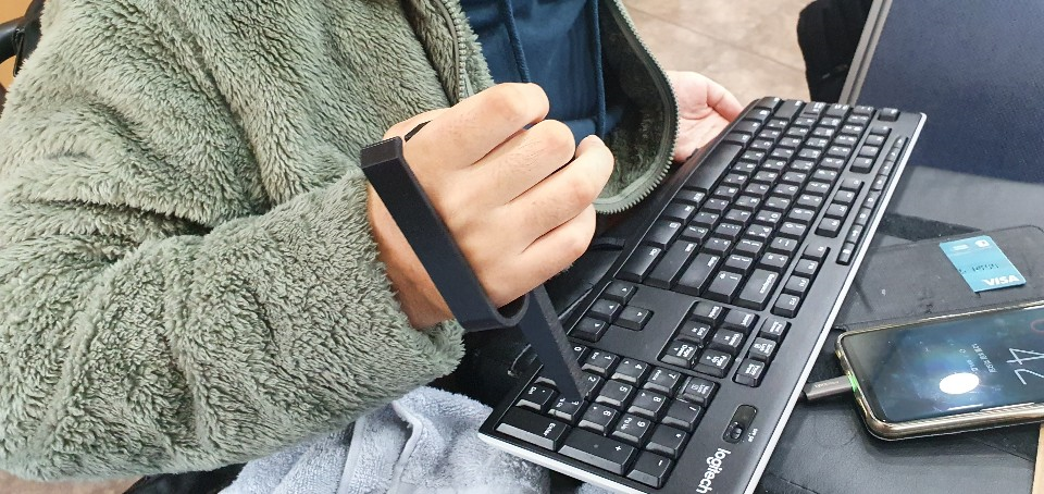 ▶ 평가정보 - 44세 남성 / 지체 / 심한 장애 / 척수손상 / ADL 의존적 - 컴퓨터 사용을 위해 타이핑 보조기기 제작 의뢰