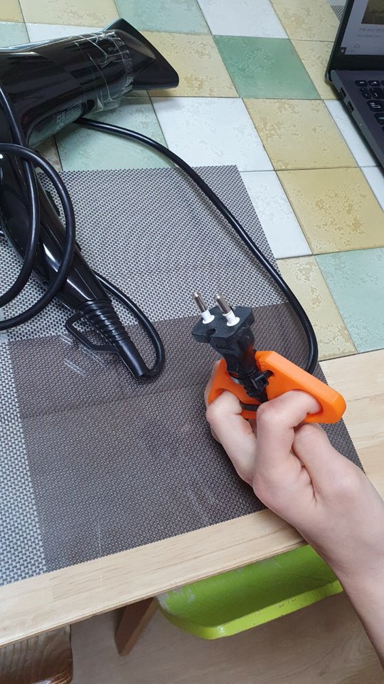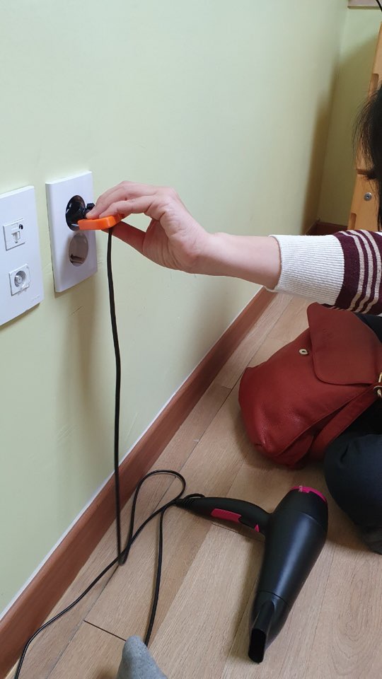 ▶ 적용 전 - 가전기기 이용시 시각적인 문제와 인지적 문제로 인해 콘센트 부분을 쥐지 않고, 전기선을 손으로 잡아당김