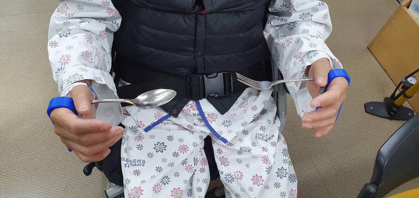 - 쥐기동작에 어려움이 있어 숟가락, 포크 사용이 어려움