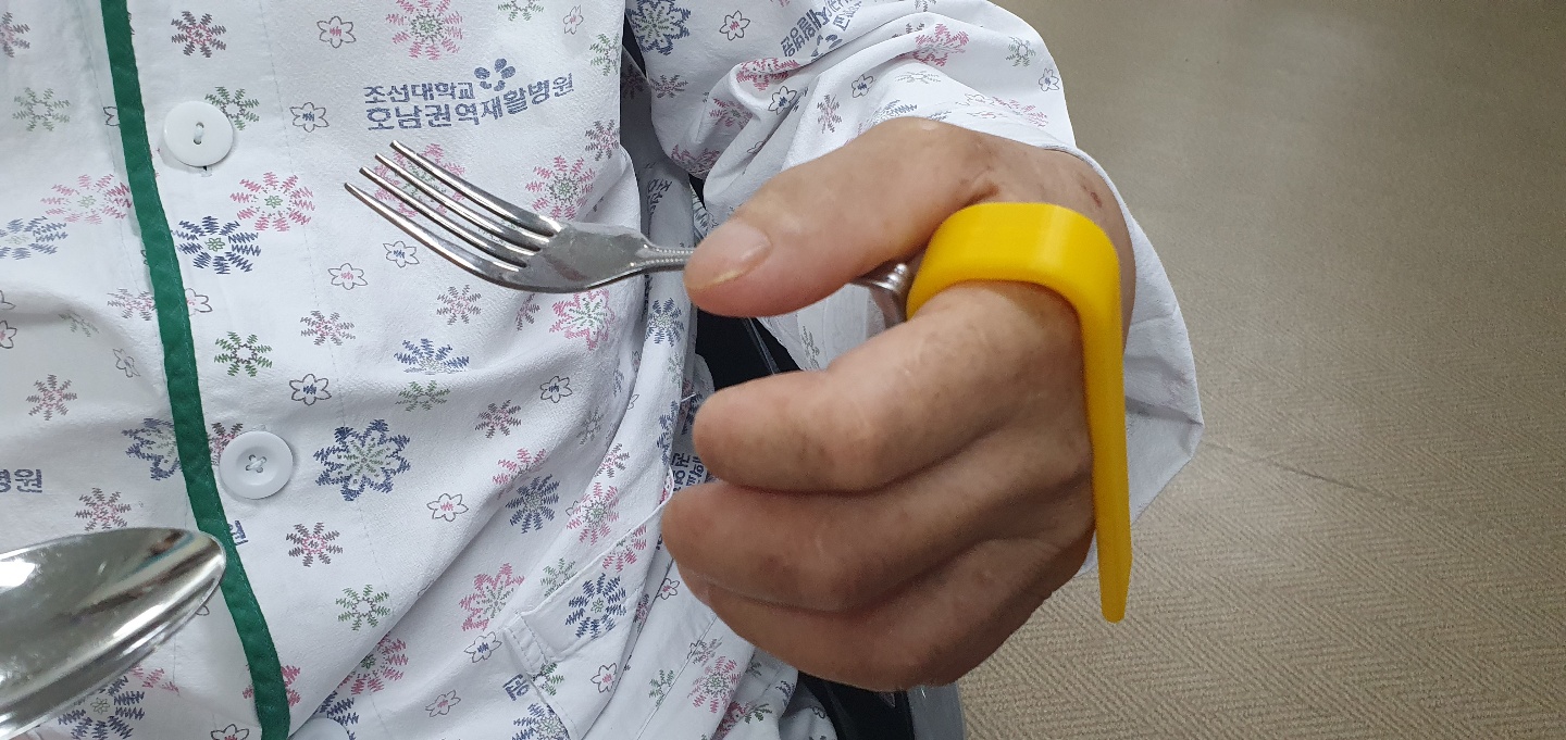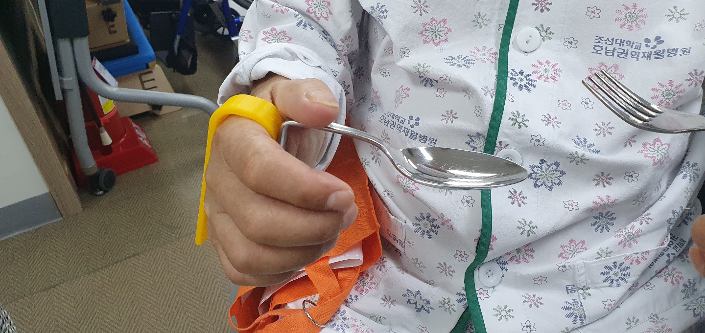 - 쥐기동작에 어려움이 있어 숟가락, 포크 사용이 어려움
