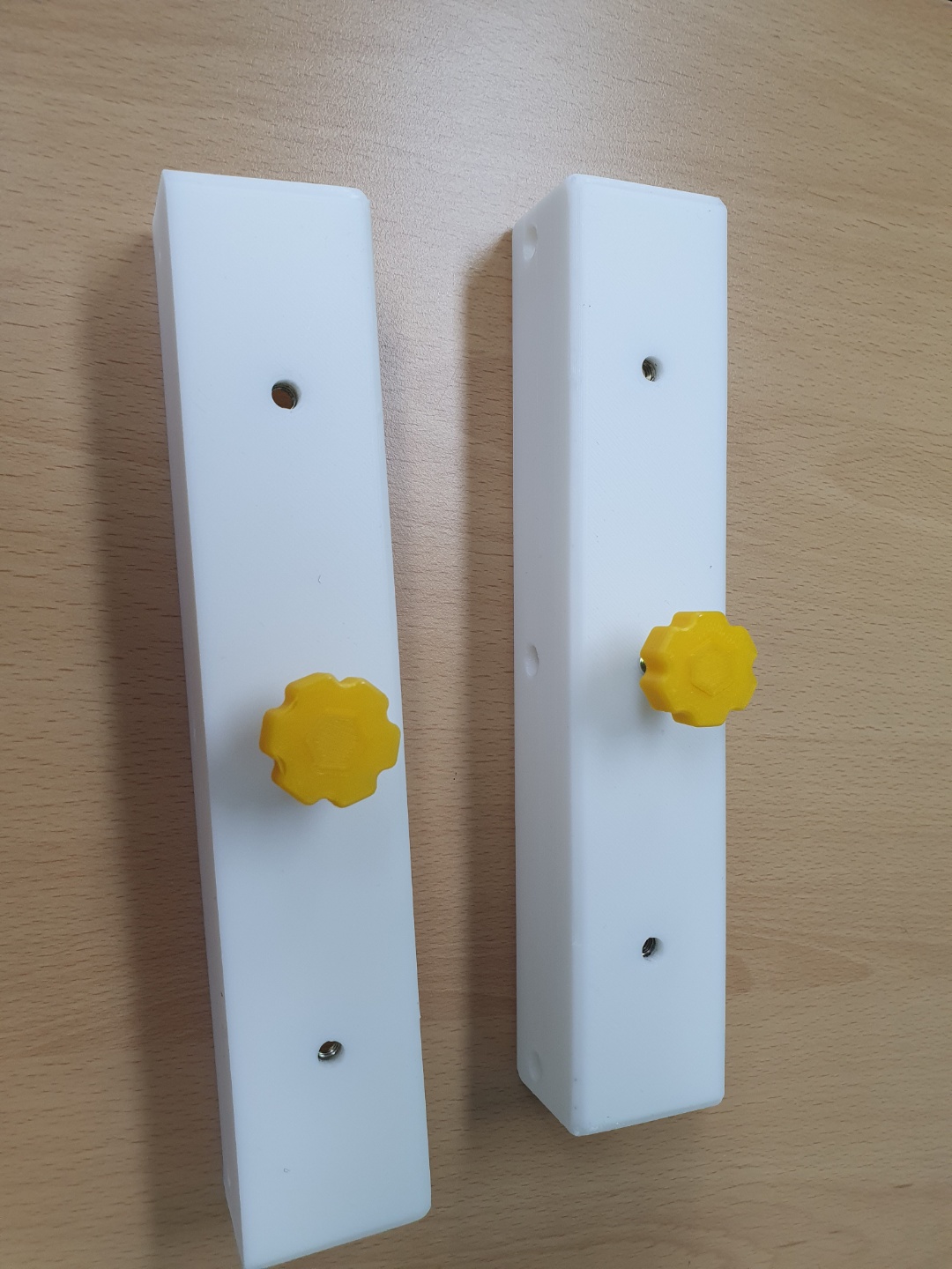 - 후방기립훈련기 팔걸이에 쉽게 장착할 수 있도록 브라켓으로 방식으로 제작
