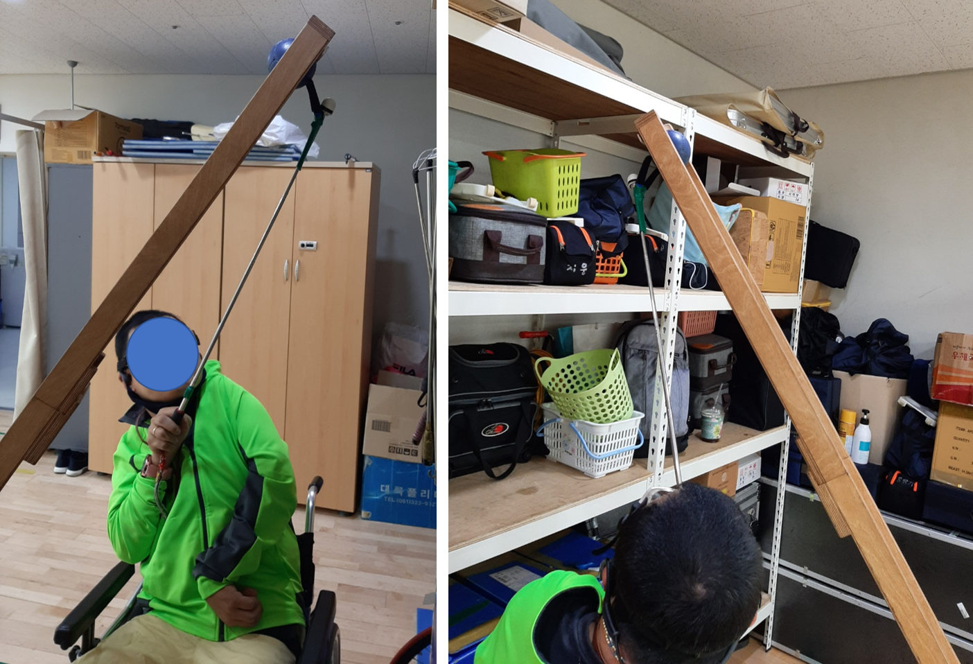 - 보치아 홈통 경기 선수로 파워지시봉 끝에 셔틀콕 헤드를 고정시켜 사용하고 있었으나 둥근 단면으로 인해 원하는 힘과 방향이 나오지 않아 경기에 영향을 미침