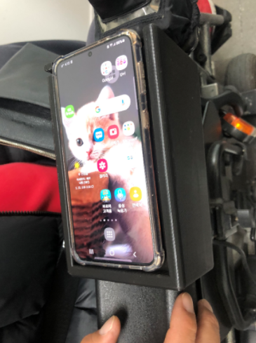 그리하여 전동휠체어에 탑승하고도 휴대폰 사용을 원할히 하고자 휴대폰 거치대를 제작해주기를 희망함.