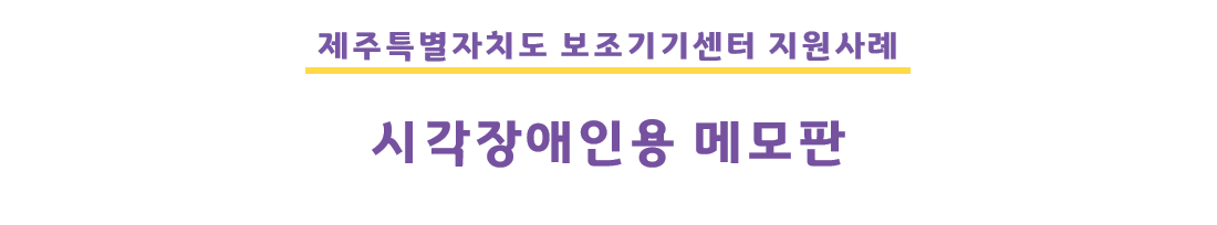 이후 저는 장애인 일자리 사업으로 취업을 하게 되었습니다. 컴퓨터를 사용하여 문서작업을 많이 하곤 했지만 수기로 글을 쓰는 작업도 많이 하곤 하였습니다. 그래서 저는 처음 제작했던 ’시각장애인 서명판‘보다 더 큰 크기의 서명판을 제작 요청했습니다. 제주특별자치도 보조기기센터에서 제 의견을 많이 반영하여 제작해여 지원해주셨습니다. 그 전보다 더 큰 ’시각장애인용 메모판‘을 쓰다보니 글을 더 쉽게 많이 쓸 수 있어서 매우 좋습니다. 직장생활 뿐 아니라 항상 휴대하여 가정 및 자녀 학습 등에서도 사용하고 있고 너무 큰 도움을 받고 있습니다.