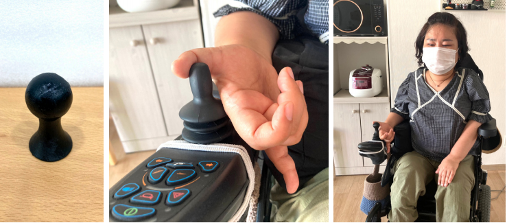 안녕하세요. 저는 3살 때 소아마비로 인해 상지, 체간 조절 기능이 어렵고 근력에도 힘이 없습니다. 또 하지의 관절가동범위 및 근력 약화로 보행이 어려워 누군가의 도움이 24시간 꼭 필요합니다. 모든 일상생활을 전동휠체어 위에서 생활하고 있습니다. 대부분의 일상생활 수행 시 활동지원사 선생님이 옆에서 도와주시는데 이동할 때는 최대한 저 혼자서 전동휠체어를 운행하여 이동합니다. 그나마 혼자 이동할 수 있다는 점에 감사하며 외부활동도 많이 하고 있습니다. 그중 하나가 척수장애인협회에서 사회 활동을 하고 있고 협회에서 다른 척수장애인들과 열심히 활동을 하고있습니다. 협회 활동 중 전라남도 보조기기센터에 방문하게 되었는데 그 때 3D 프린터 맞춤 보조기기 지원사업을 알게되었습니다. 저한테 맞춤으로 보조기기가 제작할 수 있다는게 신기했었습니다. 그래서 저도 상담을 받고 만들어보고 싶은 보조기기에 대해 설명을 드렸습니다. 저는 상지가 짧고 신체가 일부 변형되어 전동휠체어 조이스틱을 잡고 운행하는게 쉽지 않습니다. 조이스틱을 잡으면 일단 몸이 앞으로 빠지고 엉덩이 부분이 아래로 내려가서 자세가 흐트러져 자주 넘어지곤 했습니다. 그래서 조이스틱 부분을 길게 제작되어 손을 뻗지 않아도 잡을 수 있으면좋겠다고 생각했는데 그렇게 제작이 가능하다고 하여 제작을 요청했습니다. 제작 후 사용했는데 그전 조이스틱과 이질감도 없고 올바른 자세에서 전동휠체어 운행을 할 수 있어 정말 기쁘고 좋습니다. 저에게 맞는 맞춤형 보조기기를 지원해주셔서 감사드리며, 협회 활동을 통해 다른 장애인분들도 지원을 받을 수 있도록 많은 홍보를 할 수 있도록 하겠습니다. 저에게 맞는 보조기기를 제작해 주셔서 감사드립니다. |