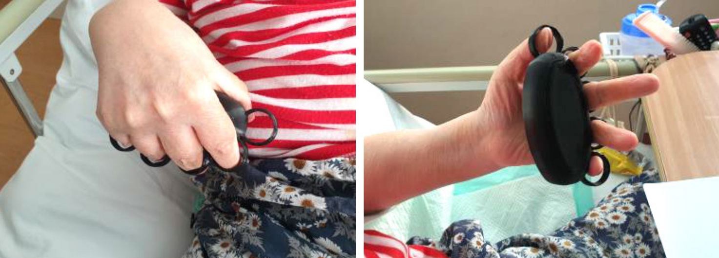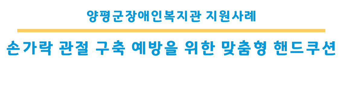 뇌졸중으로 인해 손가락을 스스로 펼 수 없고 손을 꽉 지고 있다 보니 통증도 심하고 숟가락질이나 휴대폰 사용을 스스로 하고 싶지만 스스로 해결하기에 어려움이 많았습니다. 병원에서 입원하면서 지속적으로 재활치료를 받고 있지만 하루에 받는 치료 시간이 짧아 아쉬움이 많았습니다. 치료시간 외에는 손에 쥐고 손이 굽혀있는 상태로 굳지 않도록 집에서 챙겨준 아기 상어 인형을 손에 꼭 쥐고 생활했지만 땀이 나서 위생적으로 좋지 못했고 세탁하는 동안에는 사용하지 못하는 어려움이 있었습니다. 알맞은 시기에 양평군장애인복지관에 방문하여 맞춤형 3D 프린터 활용 보조기기를 사용할 수 있다는 것을 안내받았고 맞춤형 핸드 쿠션 제작을 신청하게 되었습니다. 3D 프린터로 제작된 핸드 쿠션은 소독제를 사용하여 간단하게 세척할 수 있어 매일 사용할 수 있었고 내 손에 딱 맞게 제작이 되어서 매우 좋았습니다. 이제는 휴식하면서도 보조기기를 사용해서 손가락을 굽혔다 폈다하는 운동을 혼자서도 할 수 있어 심심하지가 않습니다. 저에게 꼭 필요한 보조기기를 3D 프린터로 제작해주셔서 감사드립니다. |