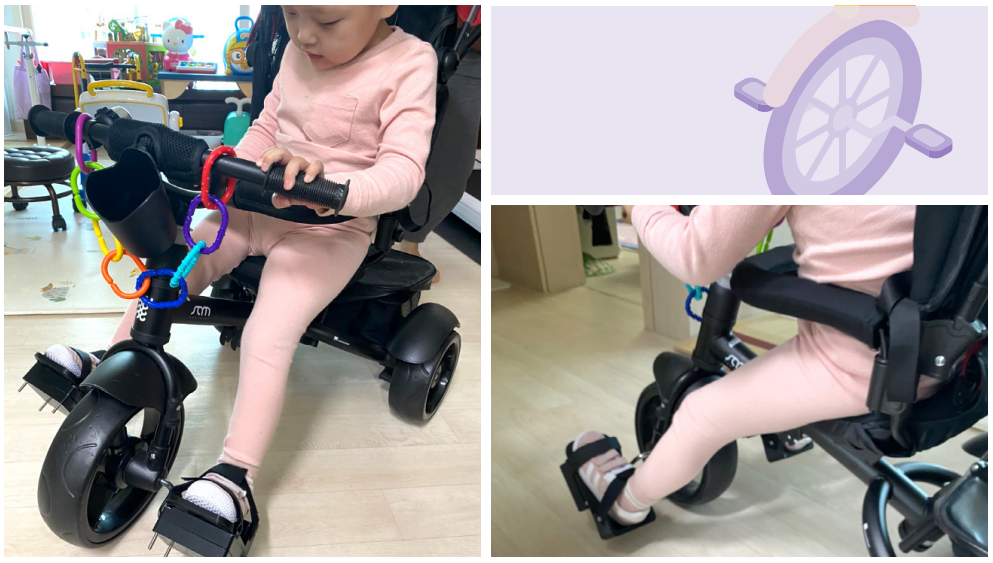 우리 아이는 근력이 전체적으로 부족해서 병원에서 재활치료를 받고 있었습니다. 치료 시간이 한정되어 있다 보니 집에서도 재활을 해주고 싶었지만 마땅한 기기도 집에 가지고 있지 않았고, 가지고 있는 아동용 자전거를 이용해서 다리 운동을 시켜주고 싶었지만 다리 힘이 부족해서 페달에 발을 붙이지 못해 사용하지 못하고 있었습니다. 이 문제를 해결하기 위해 정보를 검색하던 중 보조기기센터를 접하게 되었고 아동용 자전거를 사용할 수 있도록 페달에 발을 고정하는 보조기기의 개조를 요청 드렸습니다. 평상시에 사용하는 신발 사이즈와 부착할 자전거 페달 모양 그리고 다리 위치와 길이 등을 고려하여 우리 아이에게 꼭 맞는 맞춤형 페달을 제작해주셨고, 페달 모양 때문에 2번의 수정 작업 이후 최종적으로 기기를 받아볼 수 있었습니다. 이제는 집이나 공원에서 아동용 자전거를 태워 뒤에서 밀어주면서 하지 근력 운동을 할 수 있게 되었습니다. 하지 근력이 눈에 띄게 변화하지는 않았지만 코로나로 병원에 가지 못하는 상황에 재활훈련을 할 수 있어 매우 만족하였습니다. |