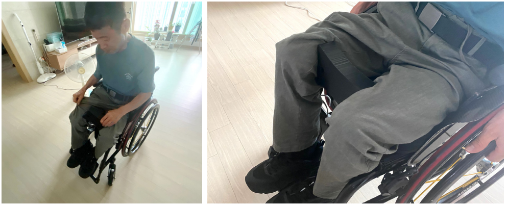 저는 하지마비 장애로 인해 대부분의 시간을 수동휠체어 위에서 생활합니다. 수동휠체어에 앉아있는 것이 힘들지 않지만 몸과 다리에 근력이 없다보니 한쪽으로 몸이 치우치는 경우가 많고 엉덩이 관절이 안쪽으로 말리다보니 자세를 유지하기 위해서 아령을 다리 사이에 끼운 상태에서 앉는 자세를 유지하여 생활하고 있었습니다. 이렇게 하면 다리가 일정한 간격으로 양쪽을 밀어주어 앉는 자세를 유지하기에 도움이 되어서였습니다. 하지만 고정되어 있는 것은 아니어서 휠체어 아래로 떨어지는 경우가 많았고 다리 사이에 두라고 만든 물건은 아니어서 불편함을 가지고 있었습니다. 그러던 중 보조기기센터에서 보내준 홍보 글을 보고 3D 프린터로 내가 원하는 보조기기를 제작할 수 있다는 사실을 알게 되었고, 센터에 방문하여 평소에 제가 생각했었던 모양과 크기로 제작을 부탁드렸습니다. 허벅지 둘레, 다리 사이 너비 등을 측정하셨고 제가 원하는 모양과 크기를 반영하여 휴대하기 편하고 가볍지만 내구성이 높은 나만의 보조기기를 제작해 주셨습니다. 다리 사이에 내전 방지 블록을 두었더니 이전보다 안정적으로 휠체어에 앉는 자세를 유지할 수 있었고 매우 만족하였습니다. 1년 동안 사용해 본 뒤에 보조기기센터에 벨트를 추가하는 디자인으로 제작을 요청 드렸고 새로운 아이디어를 반영하여 다시 제작을 해주셨습니다. 이제는 이 내전 방지 블록 없이는 휠체어에 앉는 것이 불편할 정도로 유용하게 사용하고 있습니다. 제 고민을 해결해주신 보조기기센터 담당자 선생님께 감사드립니다. |