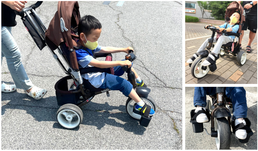 저의 아들은 사지마비에 가까운 양하지 마비라 목을 가누고 몸을 세워 스스로 앉아 있는 것은 어렵고 벨트로 가슴을 지지해 주면 앉을 수 있는 상태입니다. 다행스럽게도 인지적 손상은 적어 한살 한 살 나이가 올라감에 따라 하고 싶은 것들이 점점 많아졌습니다. 자전거를 타는 것도 그중 하나였는데요. 다섯 살 무렵 쌍둥이 누나가 네발 자전거를 타고 씽씽 타고 다니면 얼마나 부러워하던지.. 재활 운동을 더 열심히 하자고 타일렀지만 속상해하는 모습에 제 마음까지 불편했습니다. 그러다 부산의 치료실에서 어느 친구가 세발자전거를 타고 있는 모습을 보게 되었고, 아이에게 맞는 여러 가지 장치를 추가하기 위해 경상남도보조기기센터에 문의를 드렸습니다. 센터 선생님은 저희의 요구사항들을 귀 기울여 들으셨고, 여러 차례에 걸쳐 의견을 나눠가면서 아이에게 맞는 페달과 가슴 벨트를 추가한 자전거를 받을 수 있게 되었습니다. 완성되었다고 연락을 받고 난 후부터 설레는 마음으로 자전거를 만날 날을 기다렸고, 마침내 자전거를 타고 복지관 앞마당을 한 바퀴를 돌았는데, 그때 아이와 저의 기분은 이루 말할 수 없을 정도로 벅차고 기뻤습니다. 과학기술이 많이 발전했지만 사실 장애인 보조기기들은 수요가 적다 보니 대부분 수입 해야하는 상황으로 그 경제적 부담은 고스란히 우리의 몫이나 보니 늘 망설이거나 포기하기만 했었습니다. 이번 기회를 통해 인생에서 자전거가 생긴 큰 기쁨을 얻었고, 도움을 받을 수 있는 기회가 아주 가까이에 있다는 사실을 새삼 깨달았습니다. 이 서비스를 많은 분들이 공유하고 이용하여 재활에 지친 아이들이 큰 기쁨과 추억이 되길 바랍니다. |