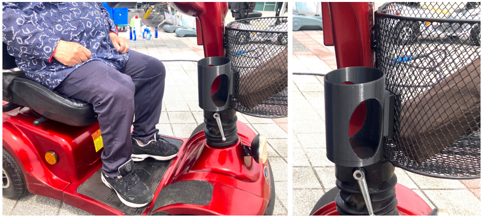 예전 큰 질환을 겪은 이후에 우측 다리가 힘도 떨어지고 마비도 와서 걸어 다니는 것이 매우 불편해졌습니다. 지팡이를 짚고 짧게는 다닐 수 있더라도 먼 거리를 걸어가는 것은 넘어질까 걱정이 많았습니다. 평소 자주 외출을 하는 편인데, 복지관이라도 갈 때에는 전동 스쿠터 없이는 나갈 수 없는 상황입니다. 외출 시간이 길어지고 전동 스쿠터 이동 시간이 길어질수록 물건을 많이 가지고 다니게 되었는데, 앞에 바구니가 있다지만 앞 쪽에 위치하다 보니 물건을 쉽게 꺼내기가 어려웠습니다. 특히 물을 마시기 위해 물통을 넣어 두면 손이 닿지 않아 꺼내기가 쉽지 않았습니다. 복지관을 이용하면서 복지관선생님이 3D 보조기기 사업에 대해 알려주셨고 보조기기센터에서 물통 거치대를 지원받아 스쿠터에 장착을 해주셨습니다. 장착해주신 물통 거치대는 운전대 바로 밑에 달아 주셨는데 어떤 물건을 넣어 두어도 덜컥거림도 없이 단단하였습니다. 제가 스쿠터에 앉아서 손을 약간만 뻗더라도 수월하게 사용할 수 있게 되었고, 물통뿐만 아니라 핸드폰도 안에 넣을 수 있어 매우 편하였습니다. 다음에도 이러한 사업이 있다면 언제든지 신청하고 싶을 정도로 만족했고 필요한 것을 생각해보고 내년에 또 신청해보려고 합니다. 제작해주셔서 감사드립니다. |