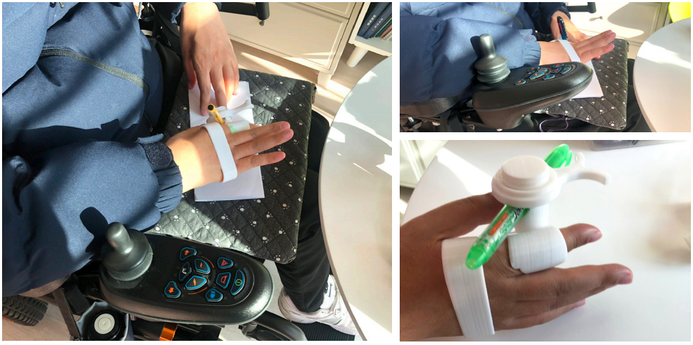 안녕하세요. 저는 26살 무렵 낙상사고로 인해 척수 손상 장애인이 되었으며 상하지 모두 마비가 있어 직업 활동뿐만 아니라 전반적인 일상생활의 모든 부분에서 어려움을 가지고 있습니다. IL센터에서 활동가 직책을 맡고 있는데, 서류 작업을 해야 할 경우가 많습니다. 그러나 저는 손목과 손가락을 굽히지 못해 필기구를 쥘 수 없어 업무하는 것이 매우 어려웠습니다. 그래서 항상 타인 의 도움을 받아 서류 작업을 해야 했지만, 평소 독립적으로 무언가를 해보고 싶다는 생각은 늘 가지고 있었습니다. 업체에서 판매하는 필기구 홀더는 편하기는 하나 여러 가지 펜을 고정하기 어렵고 알루미늄으로 되어 있어 온도에 민감하다는 점이 불편했지만 다른 방안이 없어 계속 사용할 수 밖에 없었습니다. 그러던 중 「나눔과꿈」 지원 사업을 알게 되었고 나만의 욕구가 반영된 맞춤형 보조기기를 제작하고자 신청하게 되었습니다. 여러 차례의 상담을 통해 최종적으로 나에게 꼭 맞는 맞춤형 필기 보조기기를 지원받을 수 있었습니다. 볼트-너트 형식으로 되어있고 조절하는 손잡이도 길게 디자인되어 있어 필기구를 고정하는 것도 활동지원사분의 도움 없이도 스스로 가능해져 매우 만족감이 높았습니다. 또한, 제 손에 딱 맞게 제작해 주셨고, 통증이 발생하는 곳은 여러 차례의 보완을 통해 다시 맞춰주셨습니다. 무엇보다도 여러 가지의 필기구를 바꿔서 사용할 수 있게 되어 매우 만족하며 감사하게 생각하고 있습니다. 서류작업에 있어 필요한 보조기기를 지원받을 수 있게 되어 기쁘게 생각하며, 이제 타인의 도움 없이 스스로 글쓰기를 수행할 수 있게 되었습니다. 지원받은 보조기기 덕분에 인생에서 자신감이 생긴 계기가 되었습니다. |