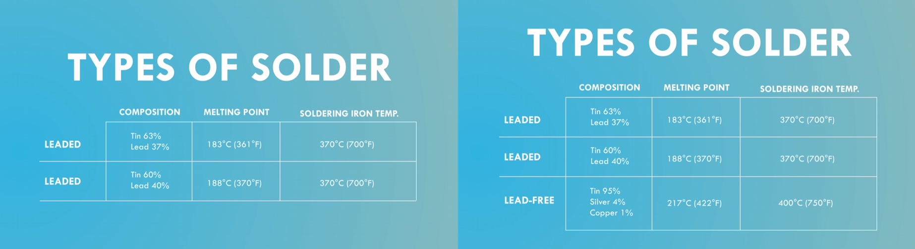 2-2. 무연납(Lead-Free Solder) - 납(Pb)이 포함되어 있지 않은 합금으로, 주로 주석(Tin, Sn)을 베이스로 은(Silver, Ag), 구리(Copper, Cu), 아연(Zn) 등을 혼합한 형태가 많습니다. 예컨대 Sn–Ag–Cu(SAC)계열이 대표적입니다. - 녹는점이 유연납보다 20 ~ 45 °C 이상 높거나, 특정 합금에 따라서는 약 217 ~ 227 °C 수준입니다. - 환경친화성 면에서 장점이 있어 최근 여러 전자제품이나 산업현장에서 채택율이 높아지는 추세입니다. ✅ 유의사항 - 흐름(wetting) 성능이 유연납보다 떨어질 수 있어 접합이 덜 깔끔하거나 오류 가능성이 높습니다. 🔧 인두기 온도 설정 팁 - 단, 실제 기판이나 부품의 열용량·구조·인두 팁 상태 등을 고려해 온도 및 가열 시간을 적절히 조정해야 합니다.