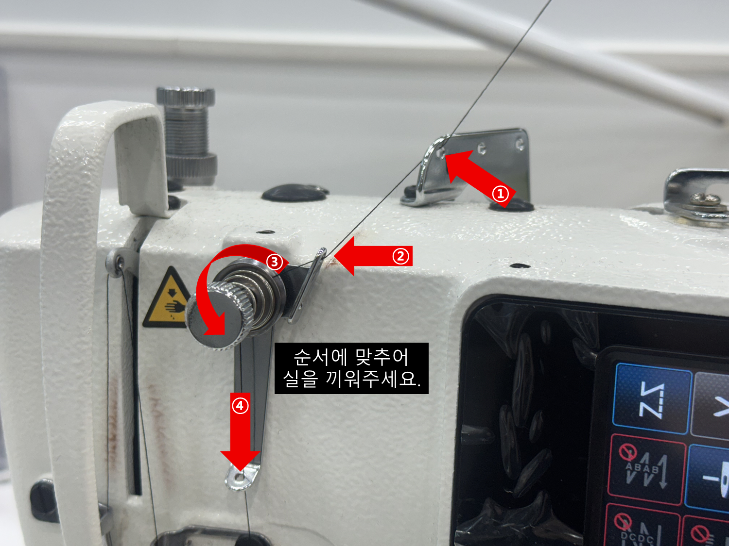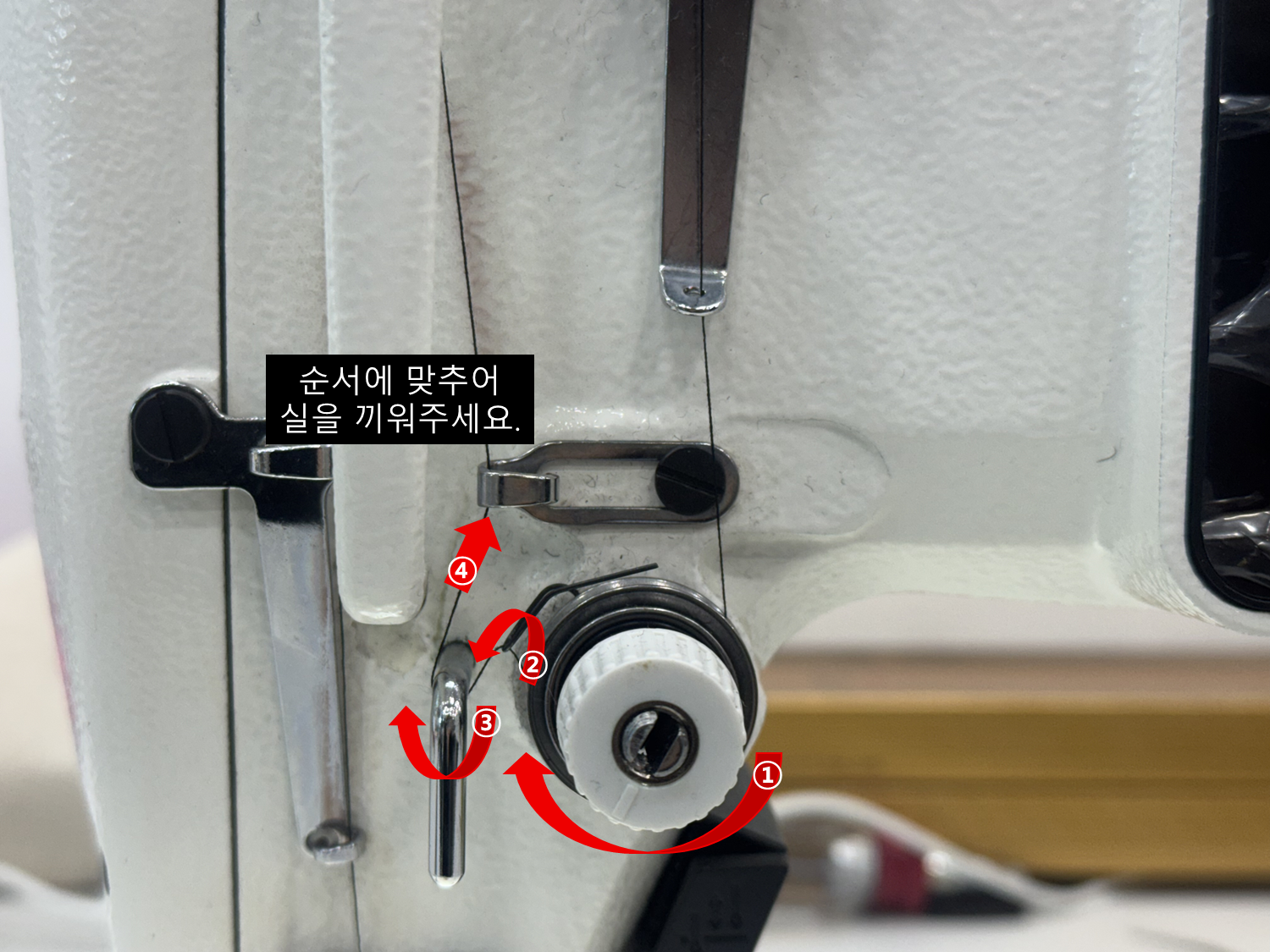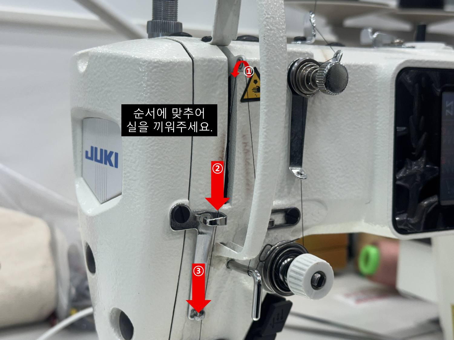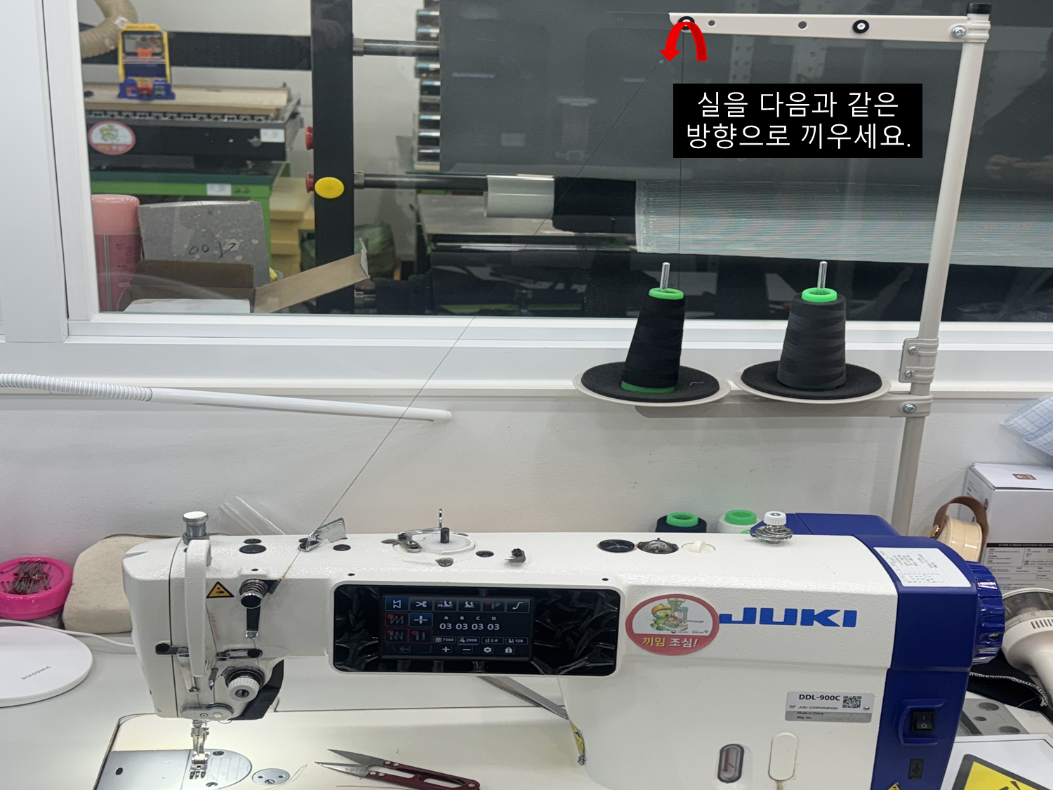 JUKI 900C 공업용 미싱 실 끼우는 방법