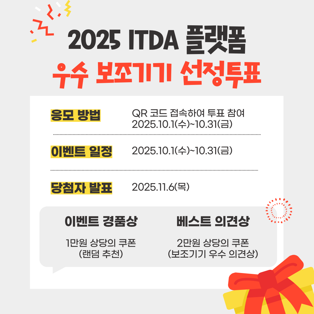 | [이벤트] 2025 ITDA 플랫폼 우수 보조기기 선정투표 | ||