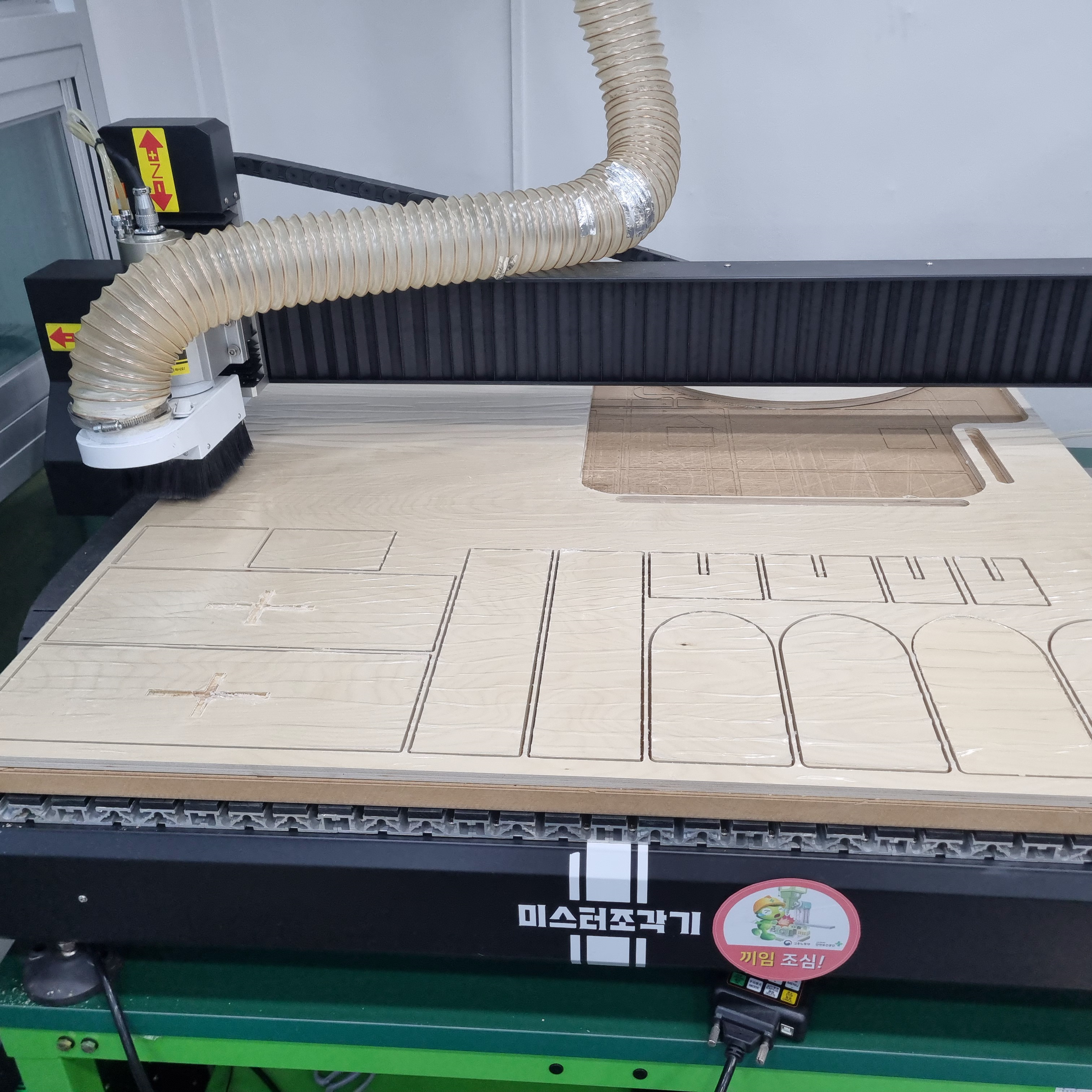 ② 3D설계프로그램(라이노)를 통한 설계 및 CNC 공작기를 활용한 목재 재단 진행(자작나무 12T)