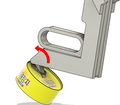 4. 갈고리 걸기 본체와 결합한 레일 끝에 있는 갈고리를 캔 고정대 내부로 넣고, 앞서 세워둔 통조림 손잡이 구멍에 정확히 걸어준다. 이 과정에서 갈고리가 제대로 걸려야 원활한 개봉이 가능해진다.