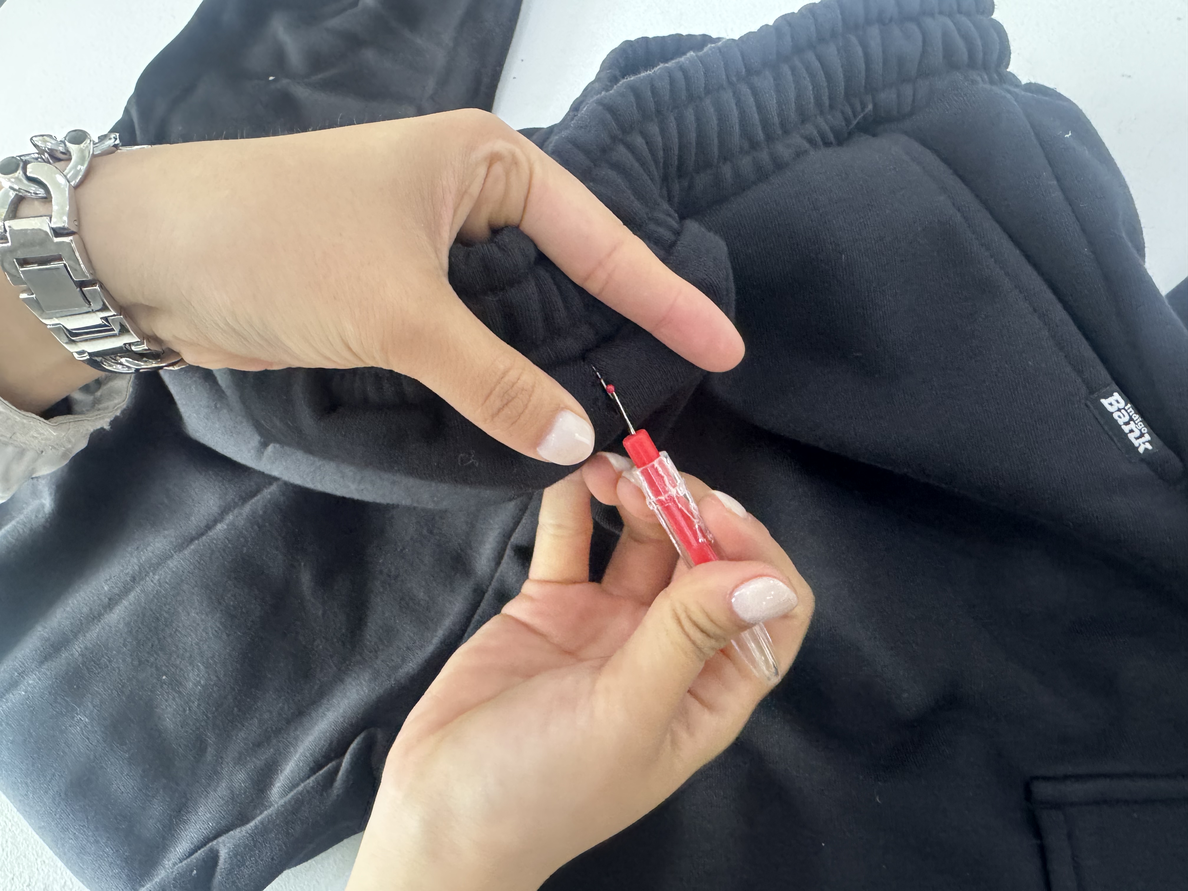 ① 지퍼를 부착할 위치 실뜯기