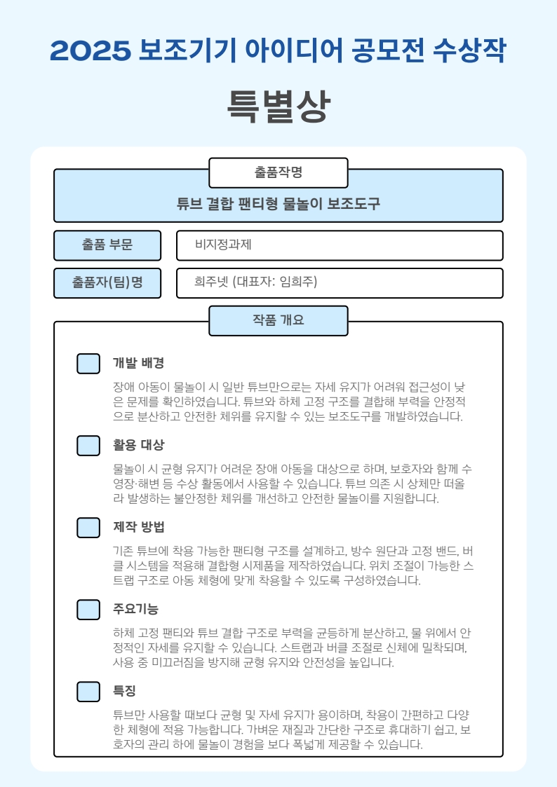 [2025년 공모전 수상작 - 특별상] 튜브 결합 팬티형 물놀이 보조도구