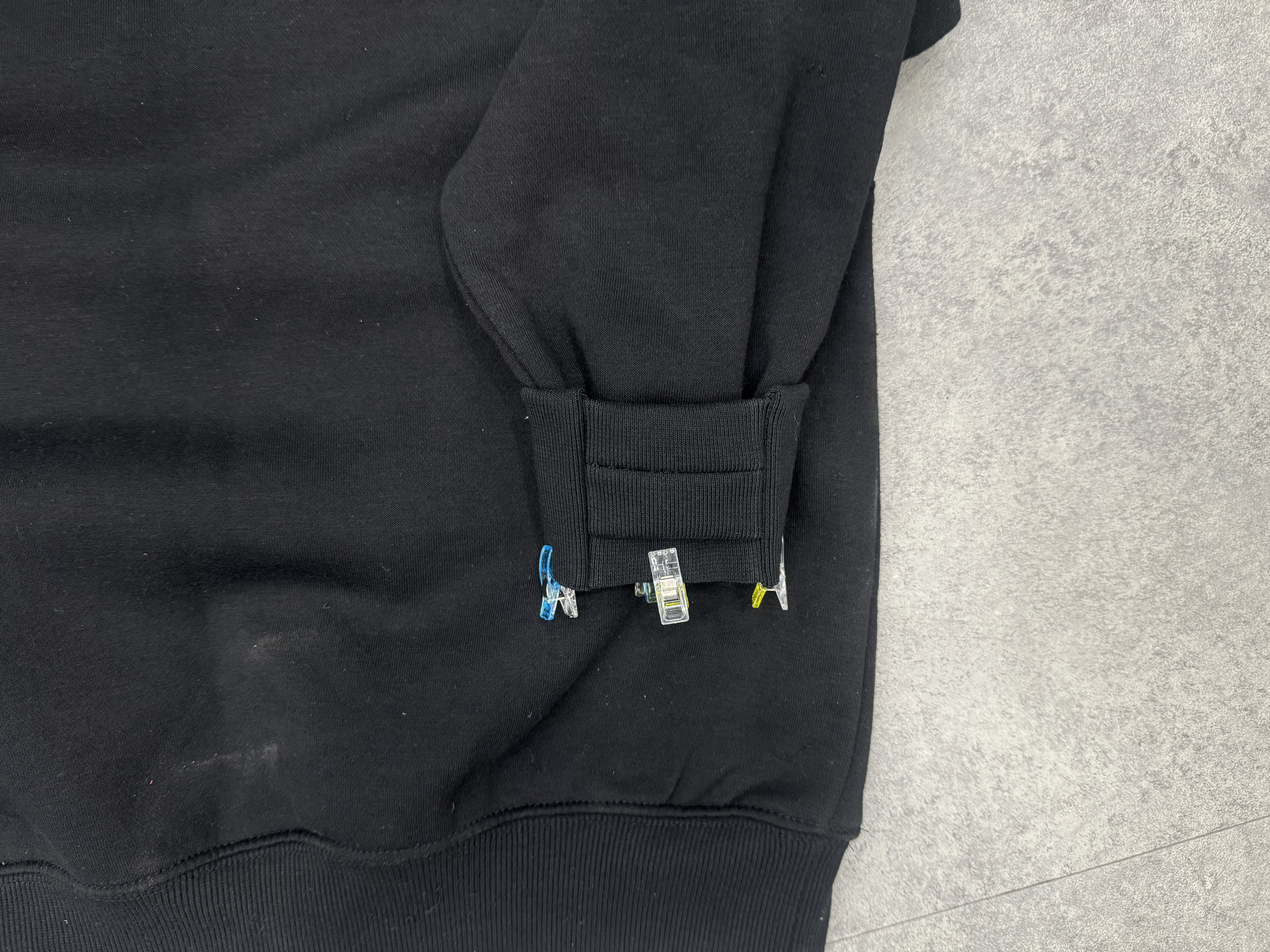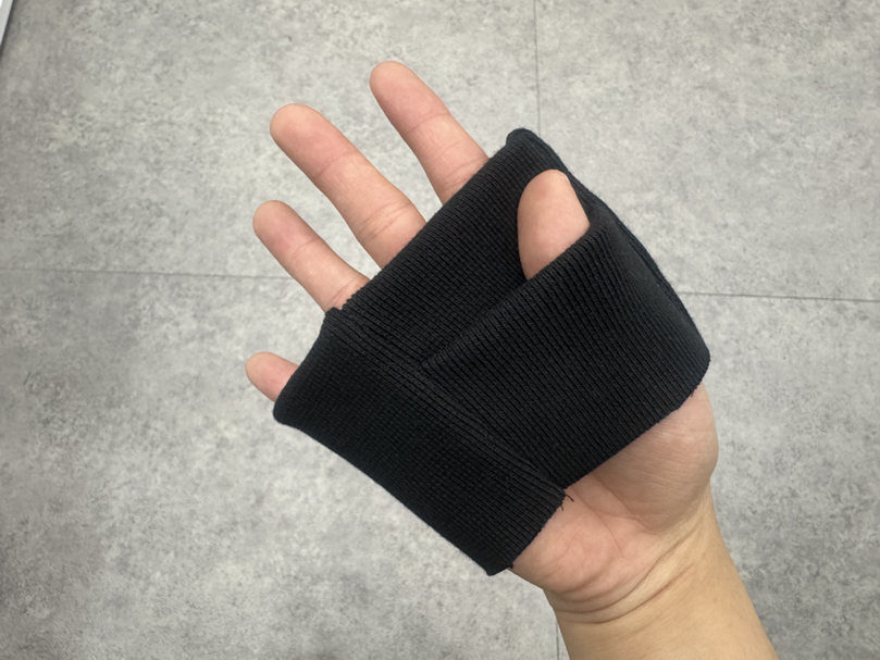 ⑦ 제작 완성된 핸드워머 시보리를 맨투맨에 부착