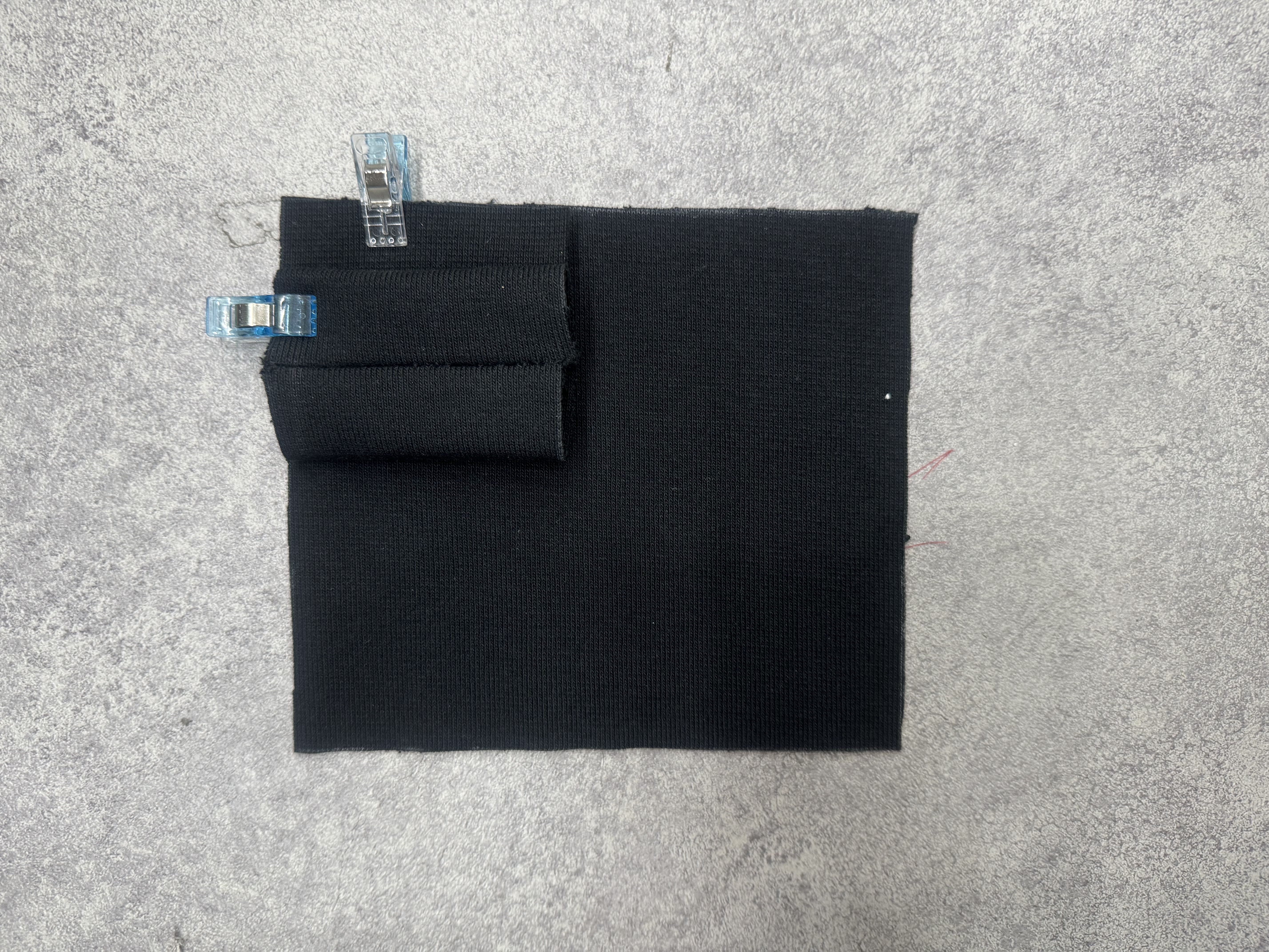 ⑤ (영상참고) 내부에 삽입되어 있단 원단을 꺼내어 겹쳐 미싱